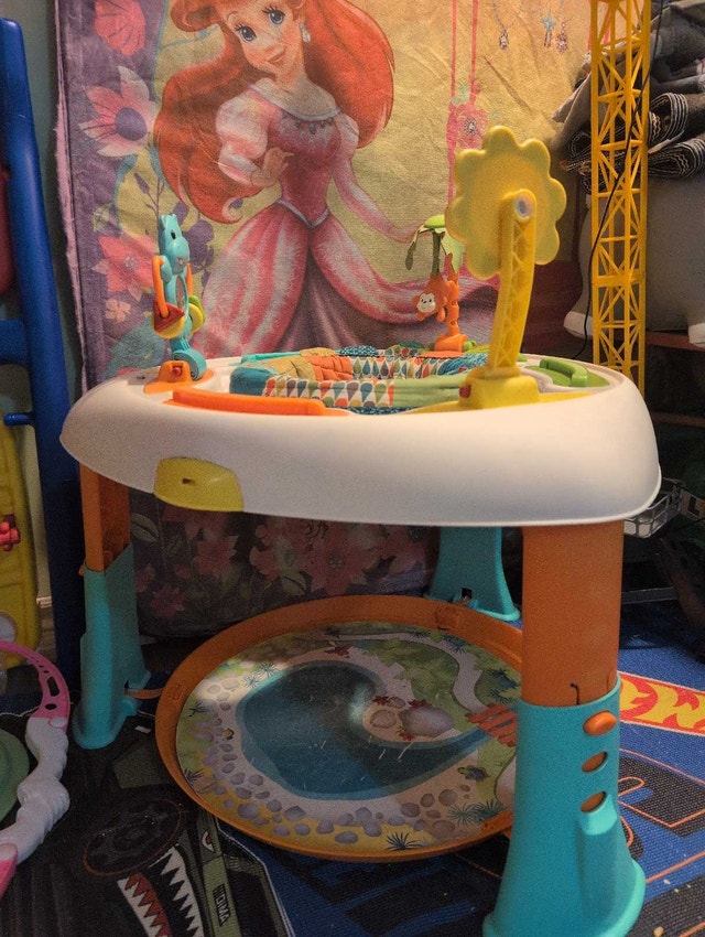 This activity table is a fantastic way to keep your baby entertained and help them develop important motor skills. Looking at similar items, a fair price for this activity table is $30. If the ad is up, it's available!