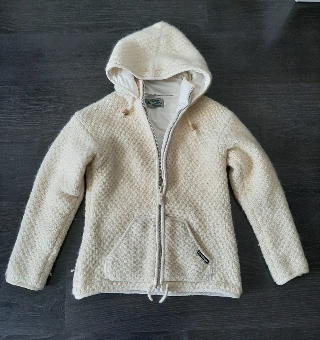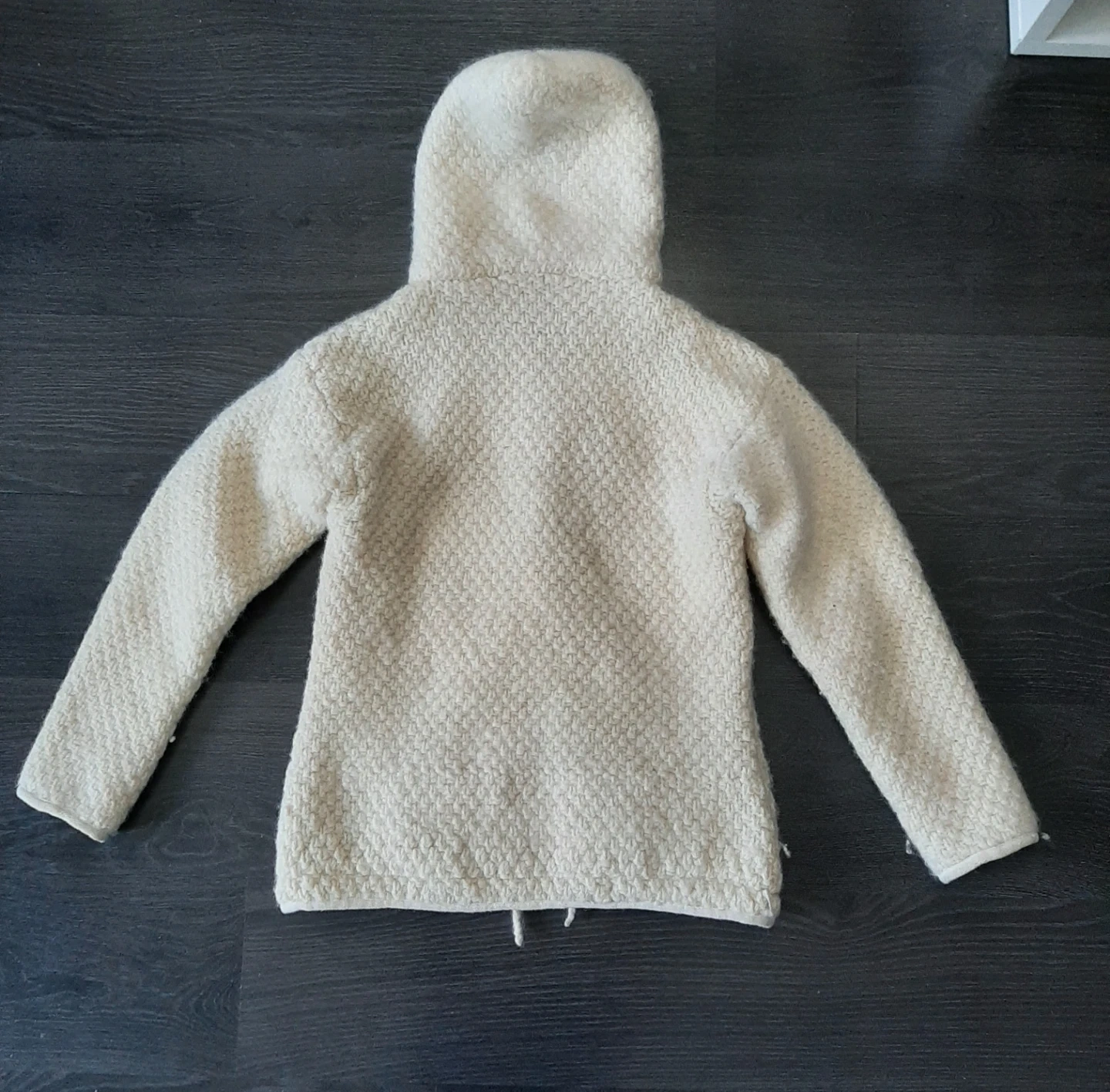 Cozy up in this Laundromat wool knit hooded jacket! It's a beautiful cream colour and features a comfortable hood and front pockets. Perfect for those chilly Canadian evenings
