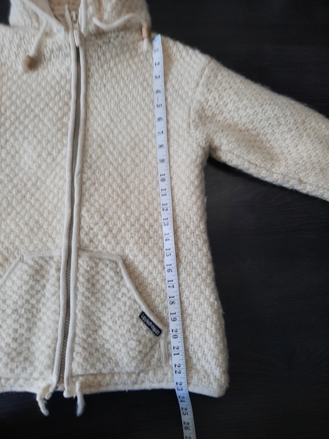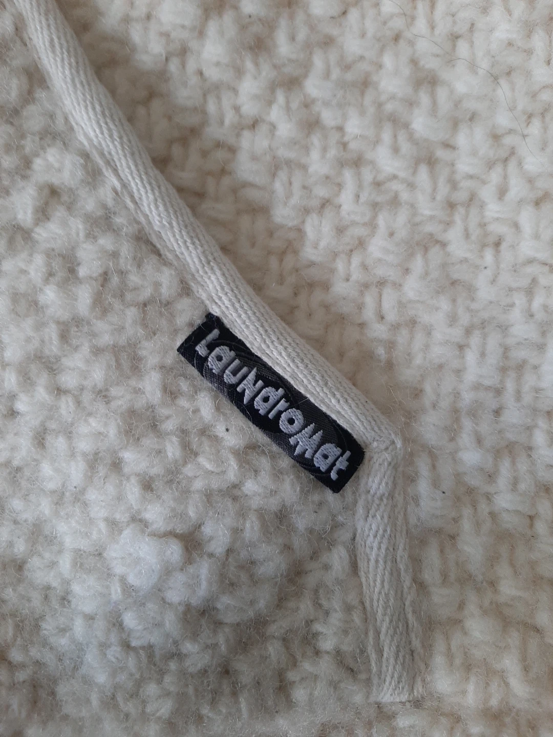 Cozy up in this Laundromat wool knit hooded jacket! It's a beautiful cream colour and features a comfortable hood and front pockets. Perfect for those chilly Canadian evenings