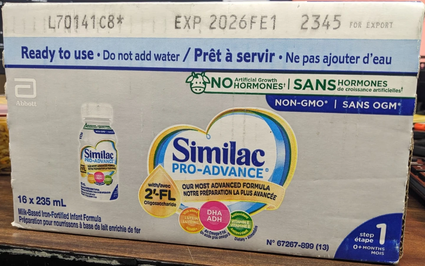 Selling a sealed box of Similac Pro-Advance infant formula. It contains 16 bottles, each 235mL. It's milk-based and iron-fortified. Expiry Date is 2026 February 01