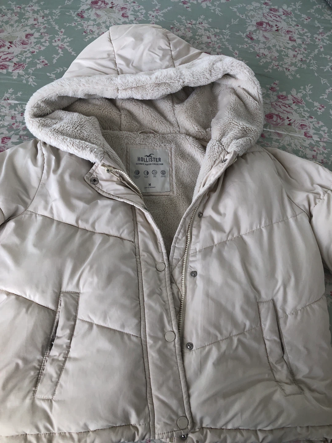 Selling a Hollister Ultimate Puffer Collection jacket in size medium. It's in great condition and super cozy with a soft, furry lining inside the hood and body. Perfect for staying warm during the colder months! It’s machine washable as well!