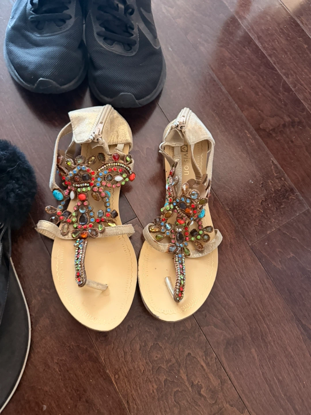 Beaded gold sandals, size 9