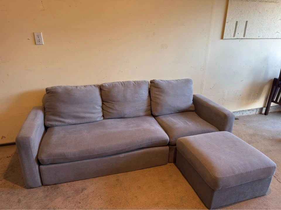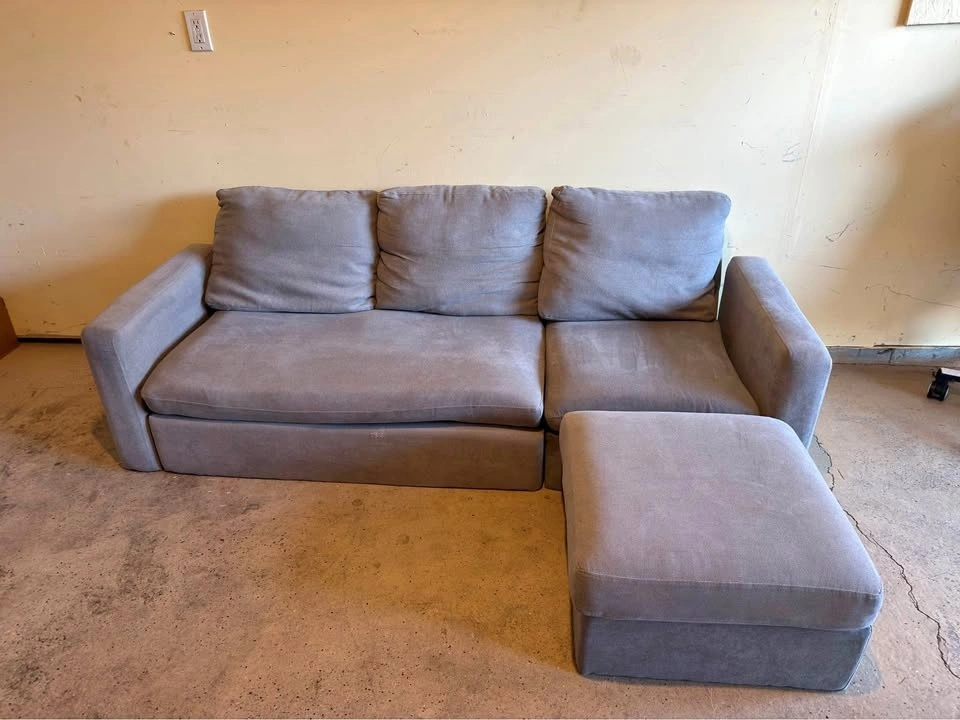 Modern gray sectional couch with chaise lounge. Comfortable, sturdy, and great for apartments, living rooms, or basements. Neutral color that matches almost any décor.