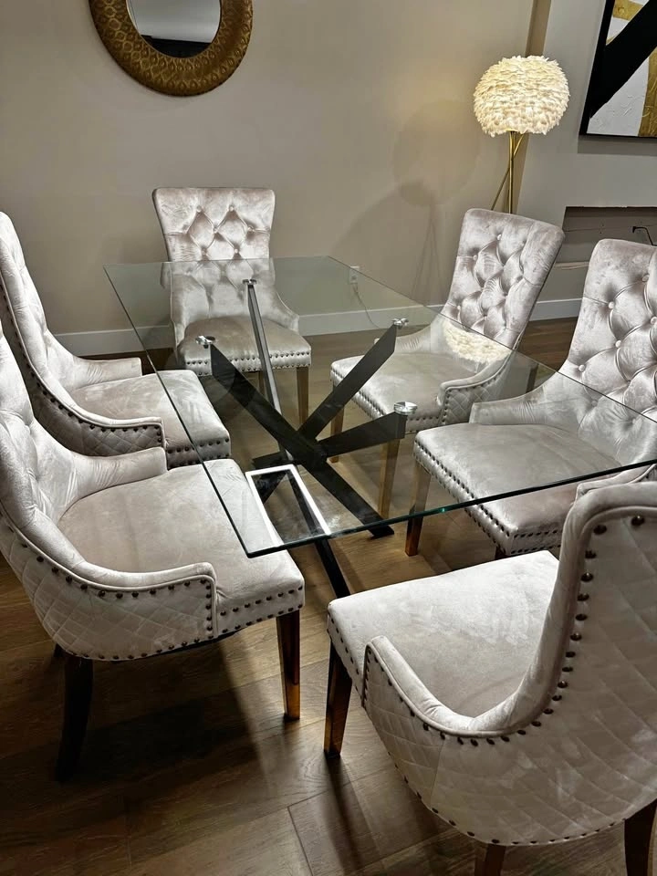 Glass Dining Table with Metal Legs - BRAND NEW