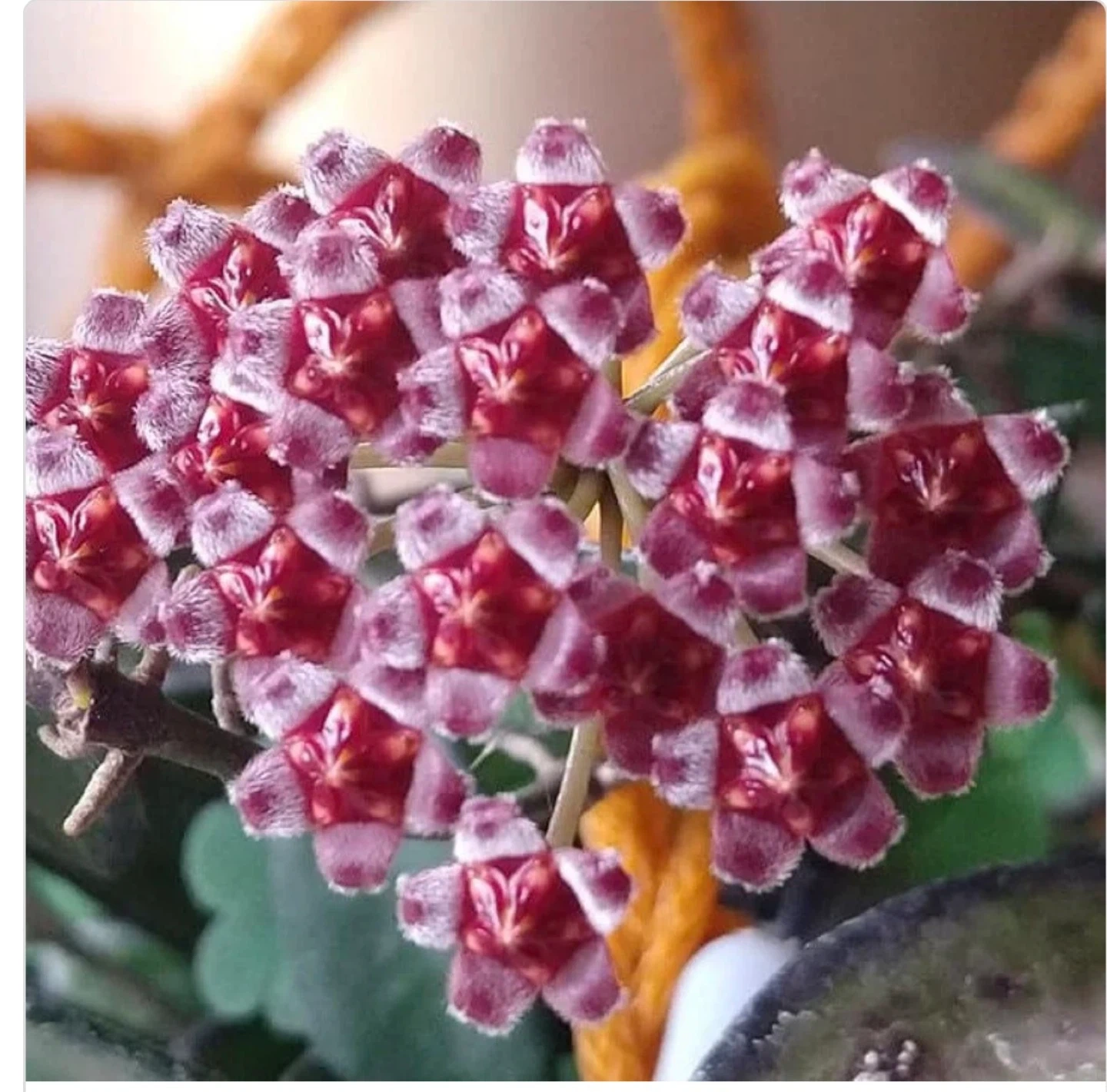 stunning rare Hoya 'Rosita', a breathtaking cross between Hoya wayetii and Hoya sp. aff. burtoniae. This rare indoor plant is sure to catch your eye! The flower smells like caramel, chocolate, butterscotch, or spiced cake, sometimes with notes of roses. If ad is up, it's available, thanks