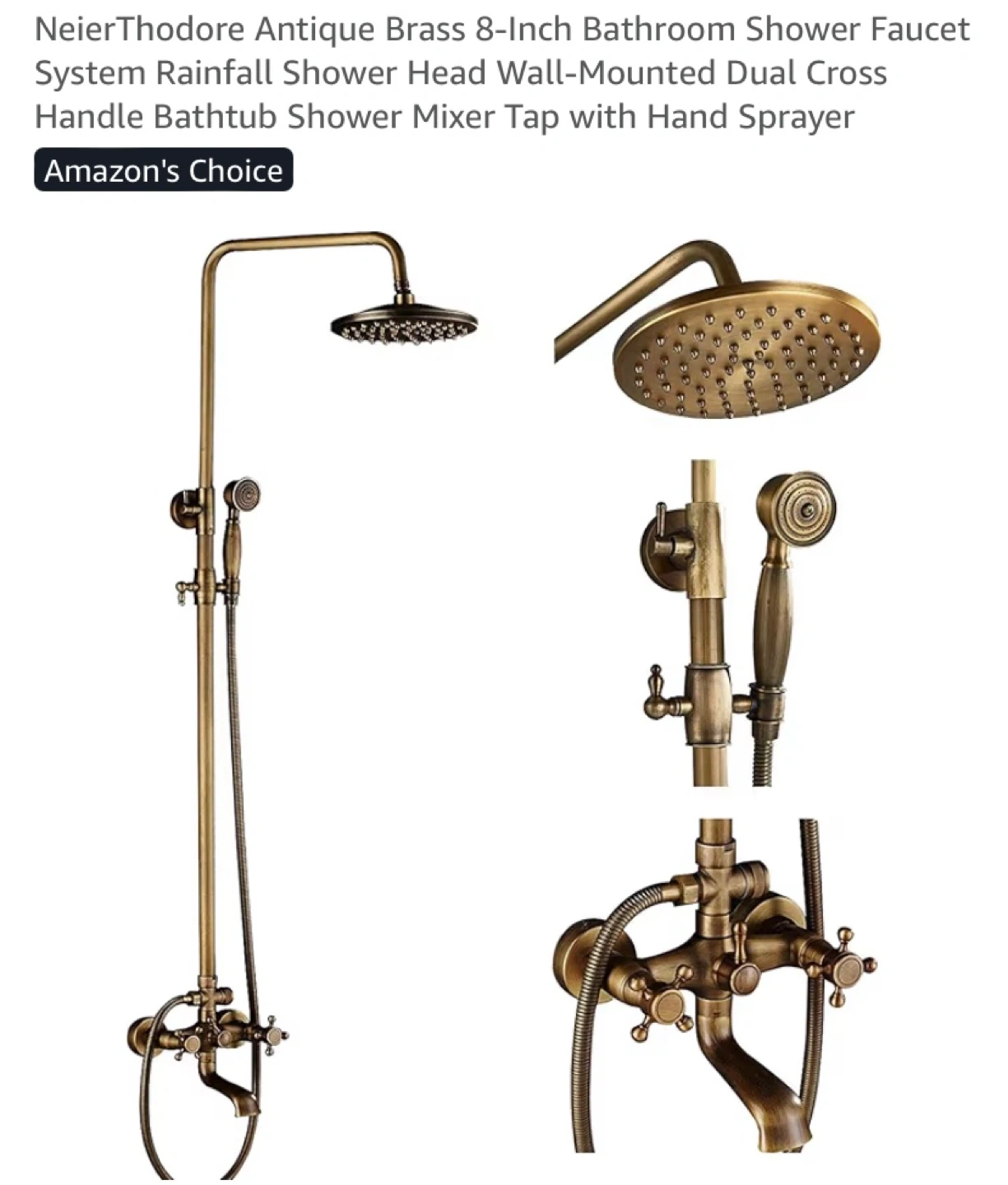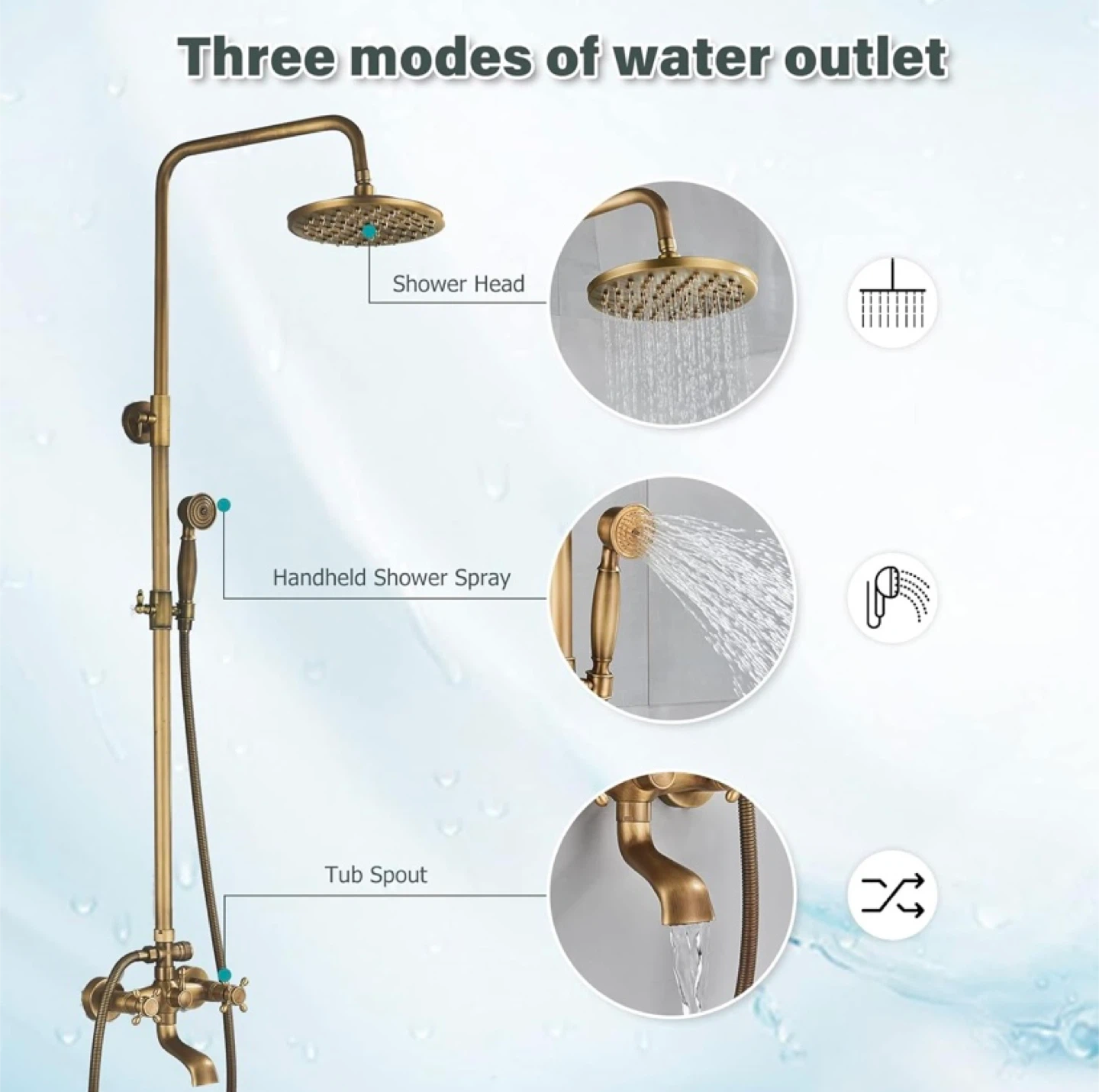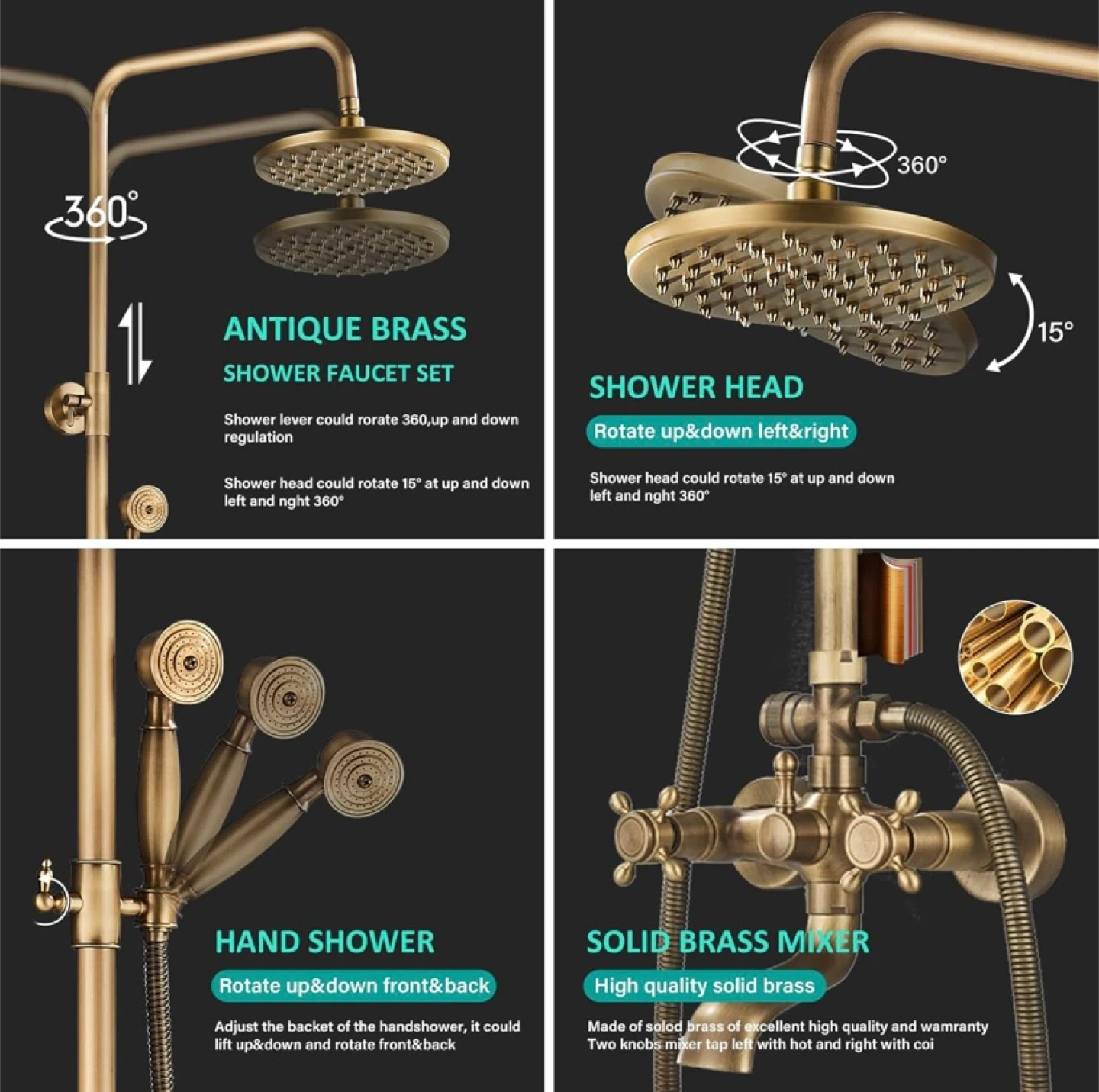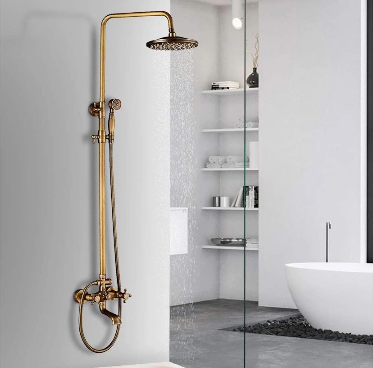 NeierThodore Antique Brass 8-Inch Bathroom Shower Faucet System
