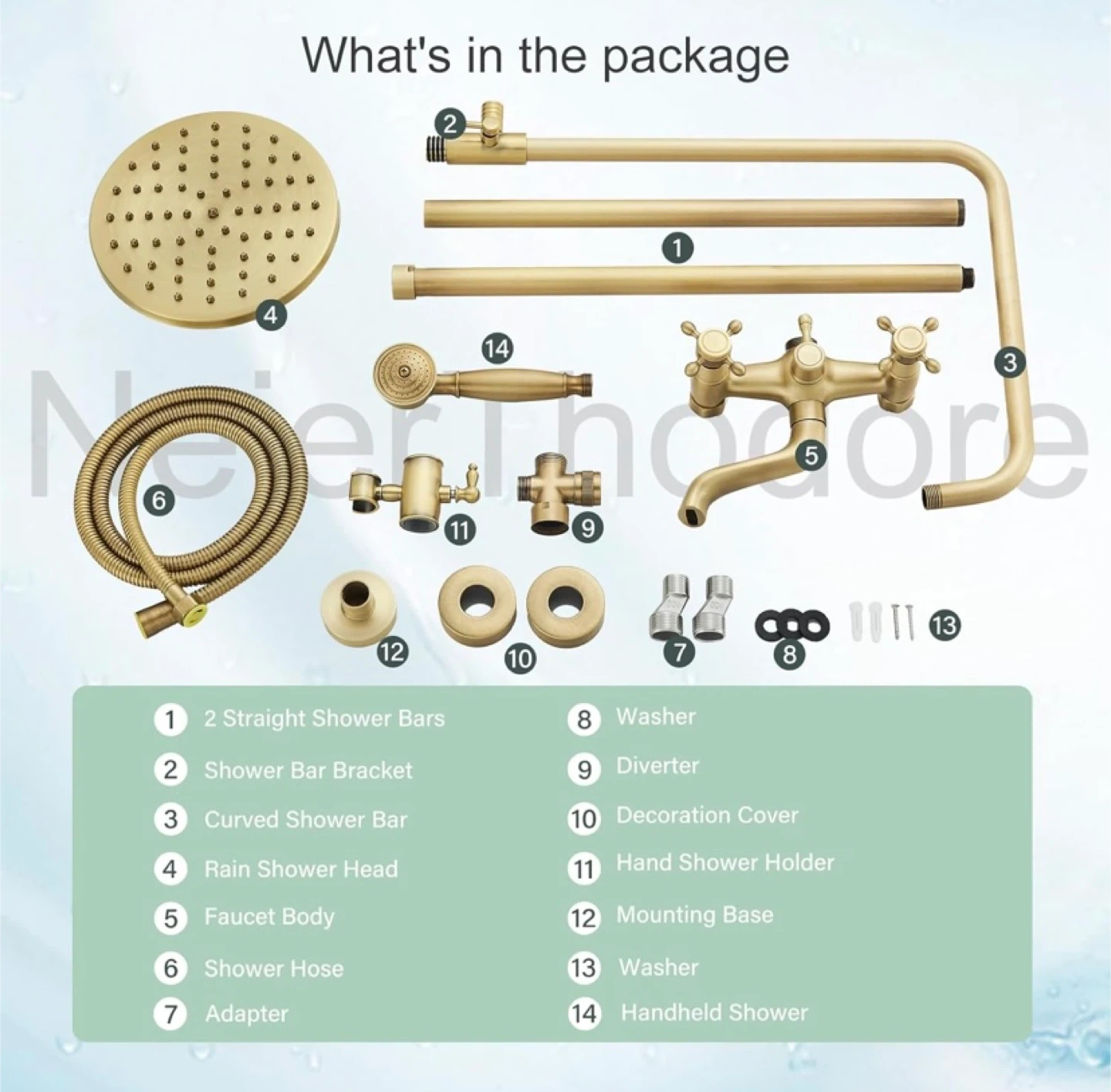 High Quality】:NeierThodore Shower Faucet Set is made of solid brass;Antique brass finish to resist corrosion and tarnishing.