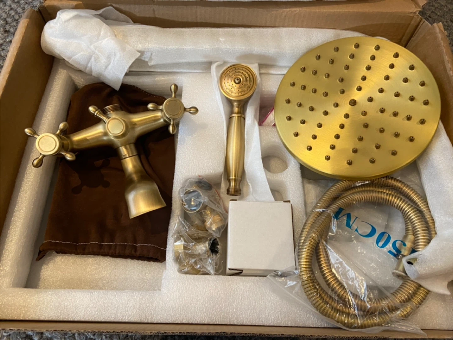 【Shower System adapter】:Double cross handle control hot and cold water. Ship with adjustable adapter to adjust installation hole distance between 5.51 inch - 6.5 inch (14cm-16.5cm