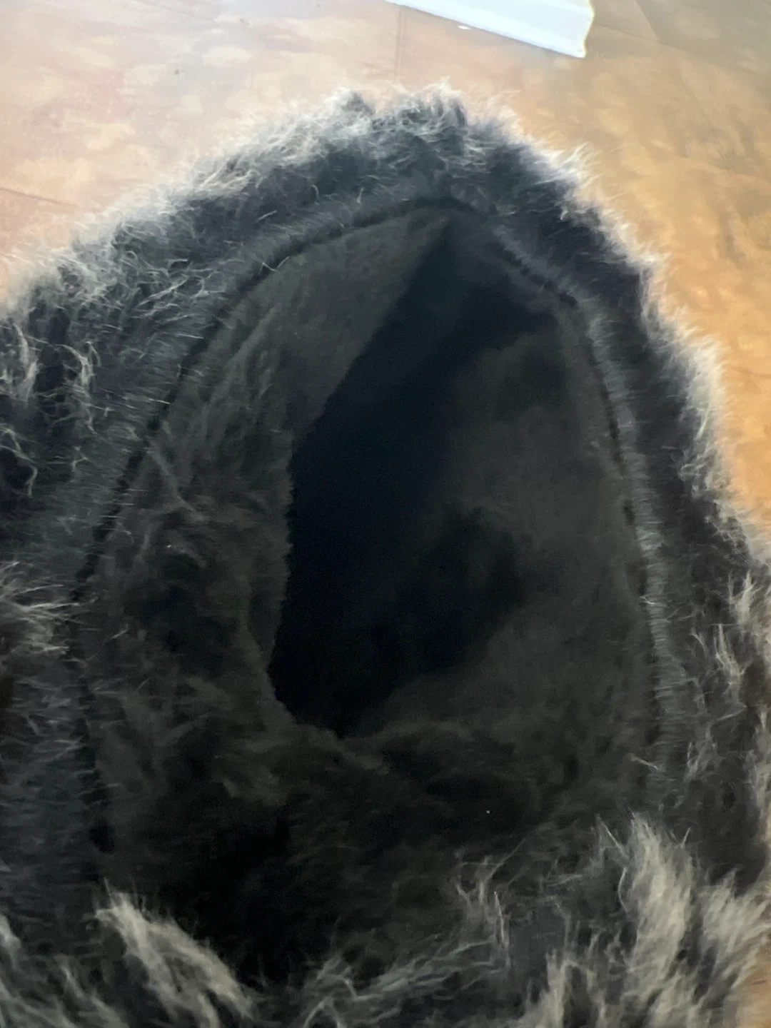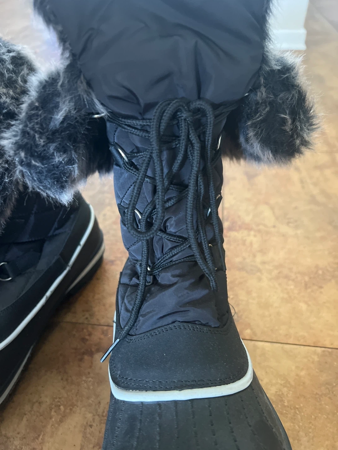 Cozy black winter boots with a faux fur trim around the top. Perfect for keeping your feet warm and dry during the colder months. They are in great condition and ready for some snowy adventures!