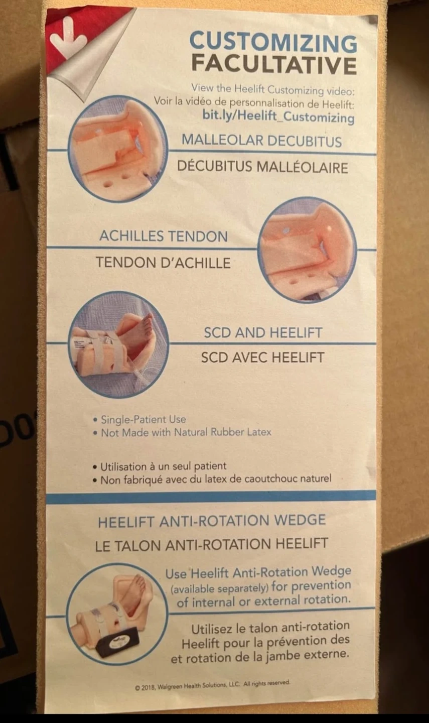 Heelift Classic Offloading Boot. Standard size. Ventilation holes for air circulation, comes with a spare elevation pad. Suspends heel to prevent heel sores/wounds. Great for pressure ulcers (bedsores).