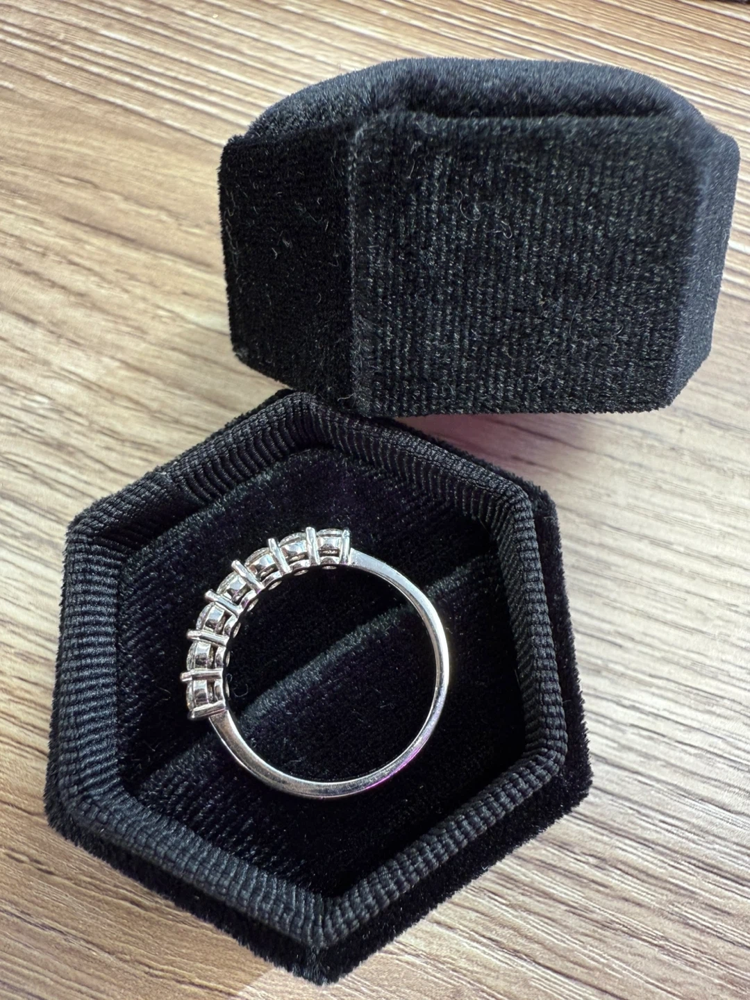 Selling a lovely silver moissanite diamond (not zirconia) band ring!