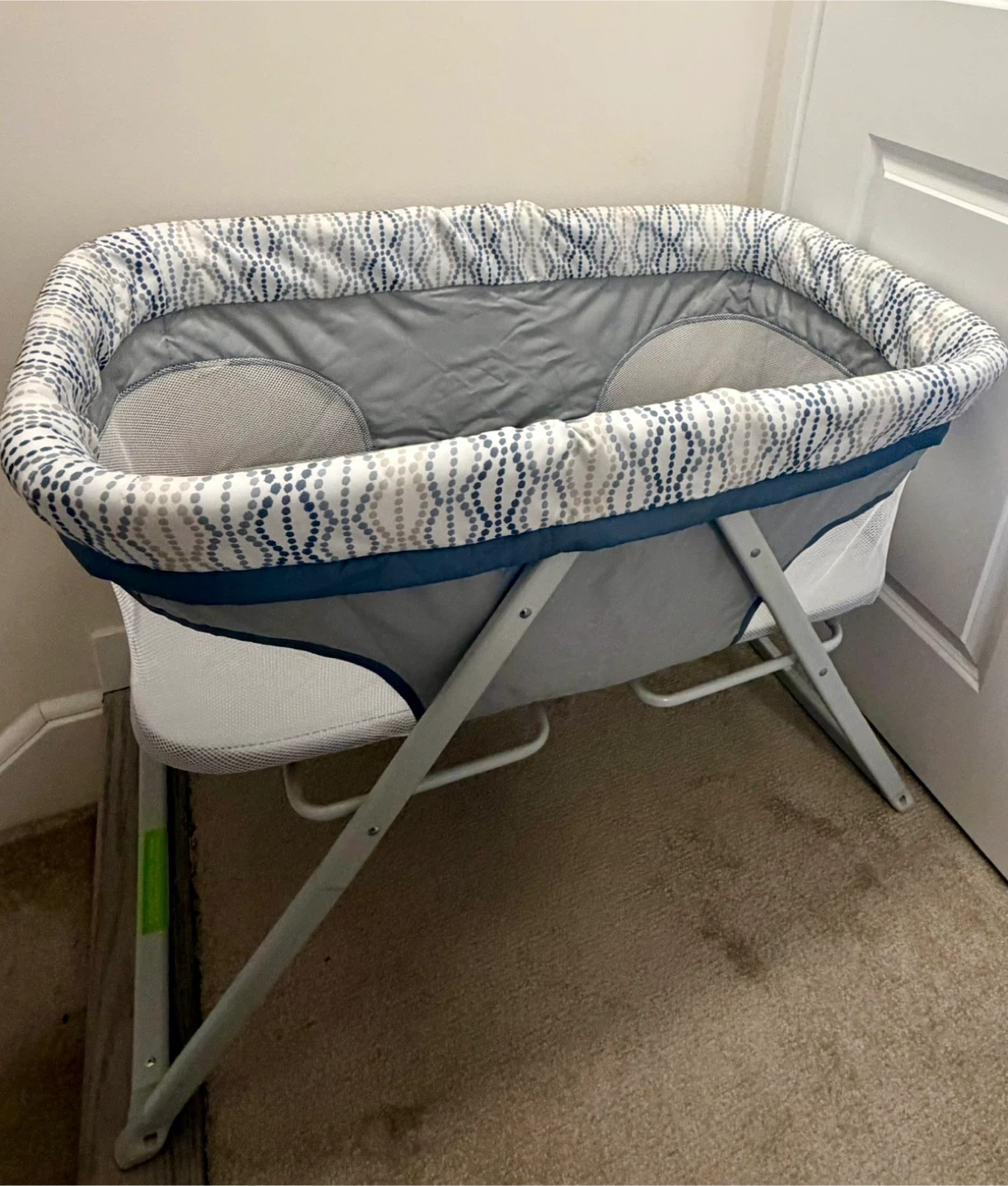 Gently used bassinet in great condition! Perfect for newborns, it's lightweight and easy to move around the house. This bassinet is bigger than regular bassinets.