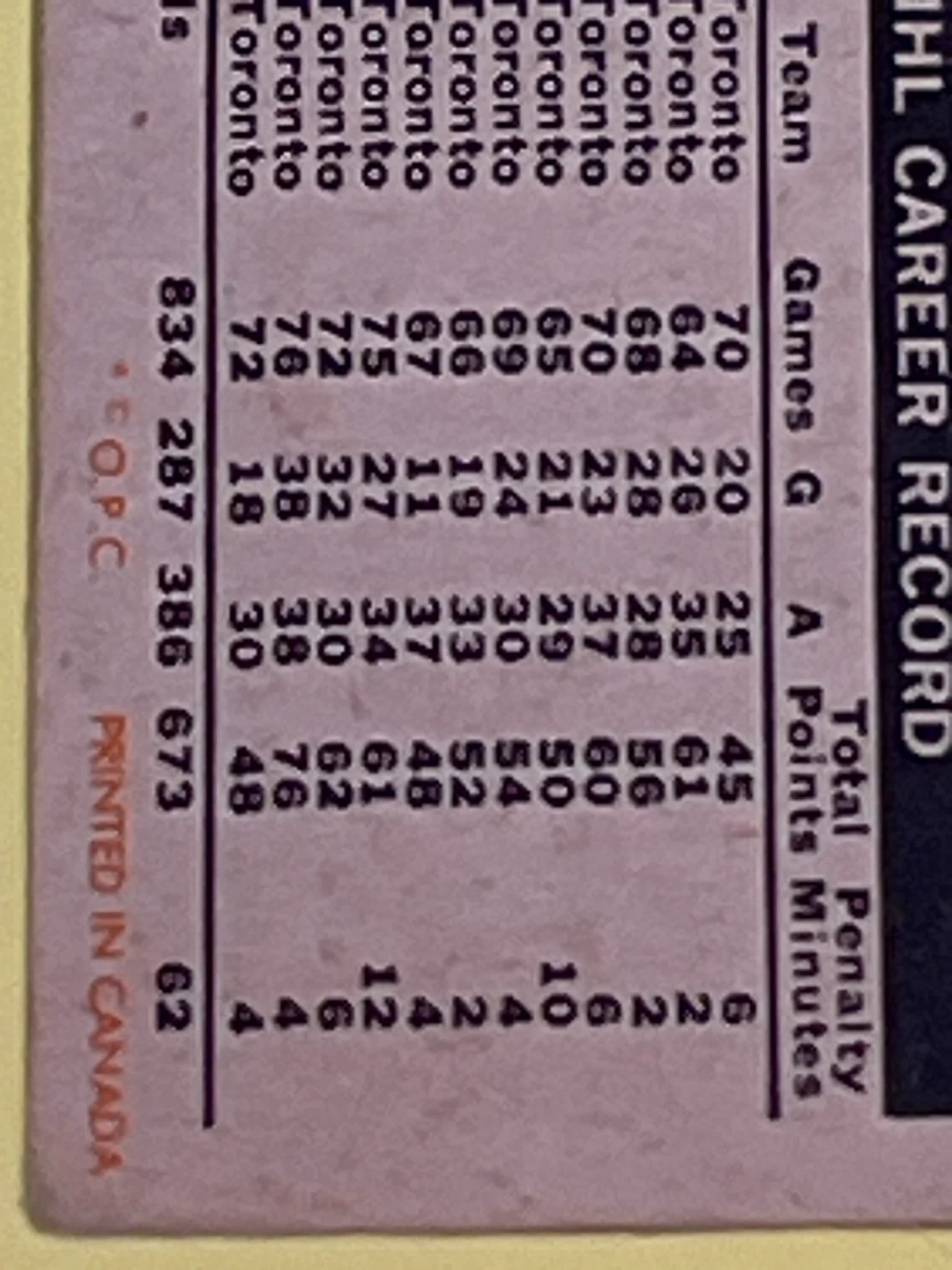 Selling a Dave Keon Toronto Maple Leafs hockey card. A great piece for any hockey fan or collector! The card shows Dave Keon in his Toronto Maple Leafs uniform. The back of the card provides his NHL career record and some biographical information.
