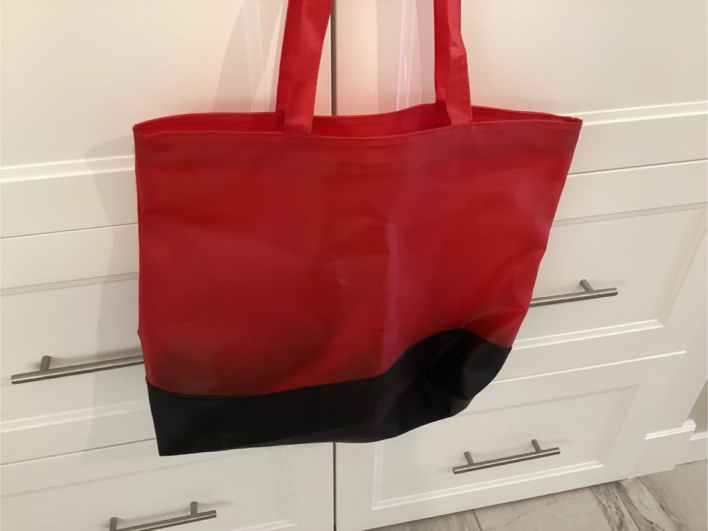 A red and black vinyl tote bag. Large!