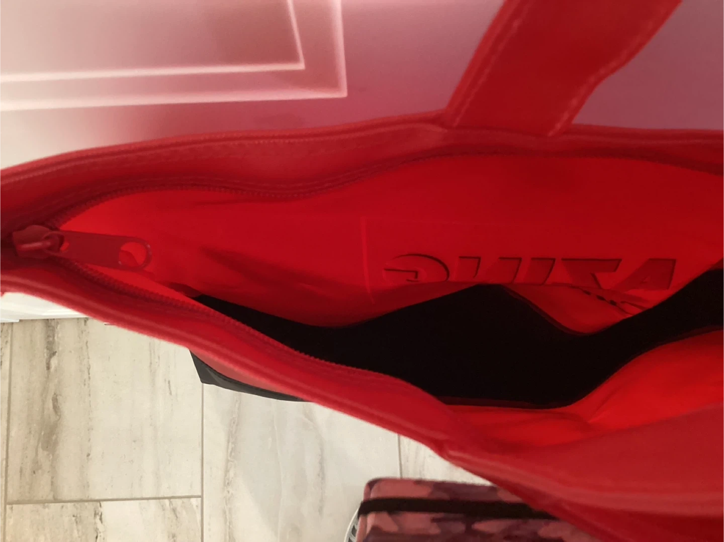 A red and black vinyl tote bag. Large!