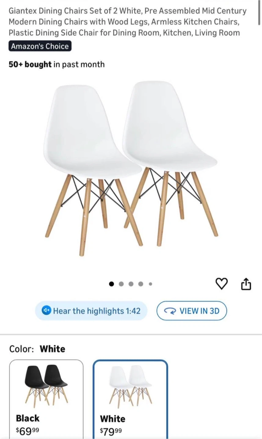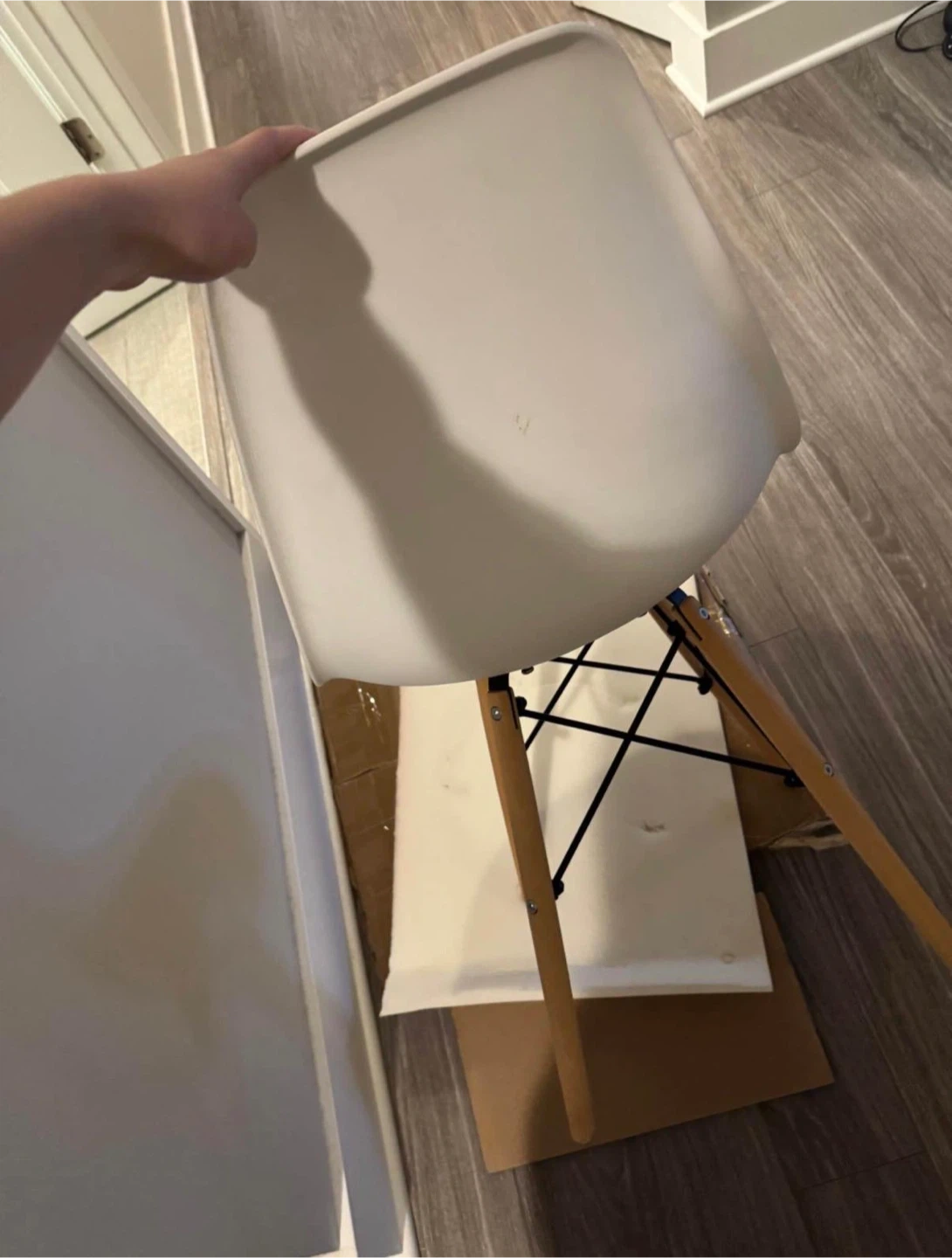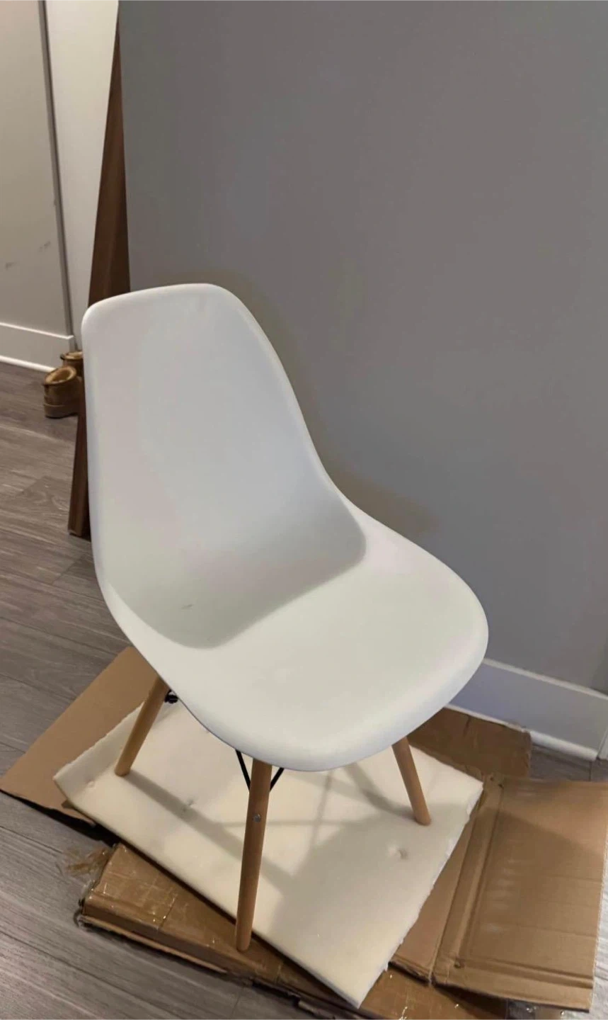 Selling a white Giantex dining chair with a mid-century modern design! It features wood legs and an armless kitchen chair style. The chair is in great condition and ready to add a touch of modern elegance to your dining room, kitchen, or living room. Only 1 available.