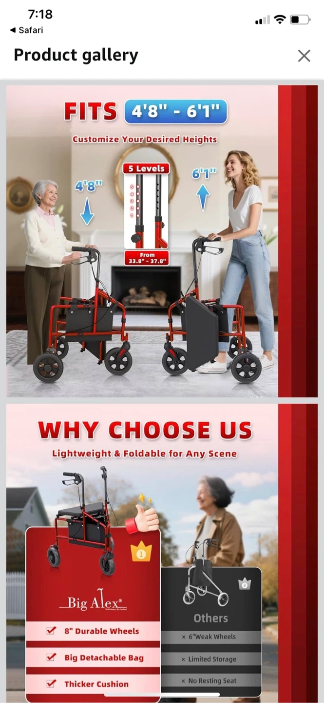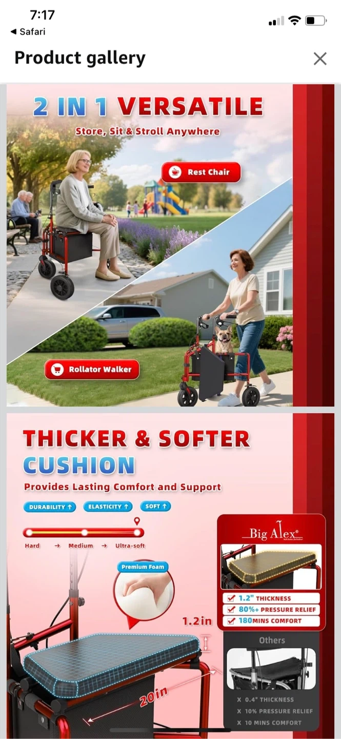 BUILT-IN REST SEAT & STORAGE: The integrated seat supports up to 300 lbs, offering a sturdy built-in seat for whenever you need to rest. The spacious under-seat storage bag securely holds most personal items, Combines walking aid and shopping cart for Superstore trips