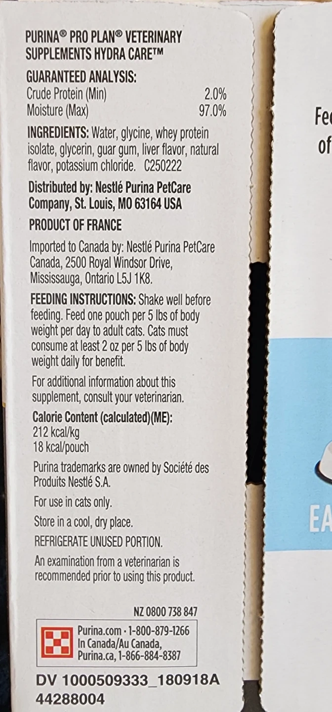 Brand New Purina Hydracare for Cats (FRANCE) - the higher quality, previous formula from France they stopped making. I have 10 boxes left.