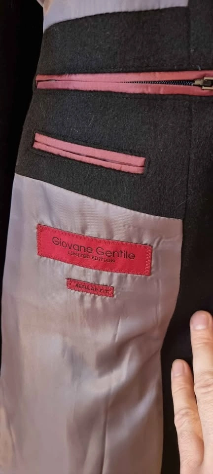 Step out in style with this elegant Giovane Gentile wool coat, perfect for the colder months! Although pre-loved, it remains in good condition and offers a timeless look and feel. This coat is made with extra fine wool IN.TES.PRA, TESSUTO INTERAMENTE IN ITALIA.