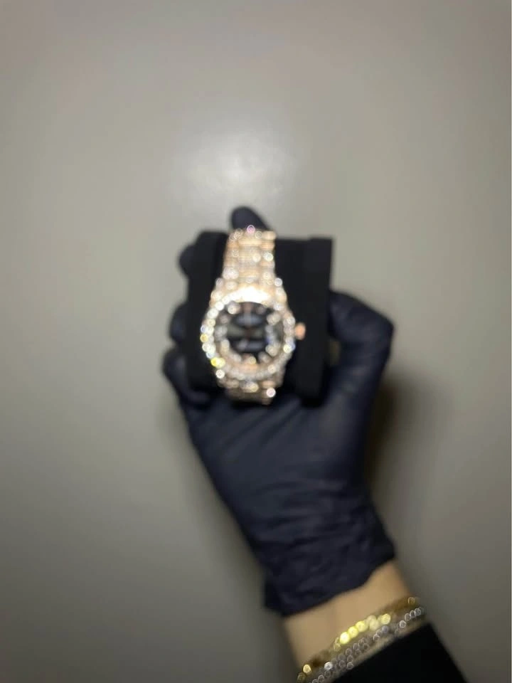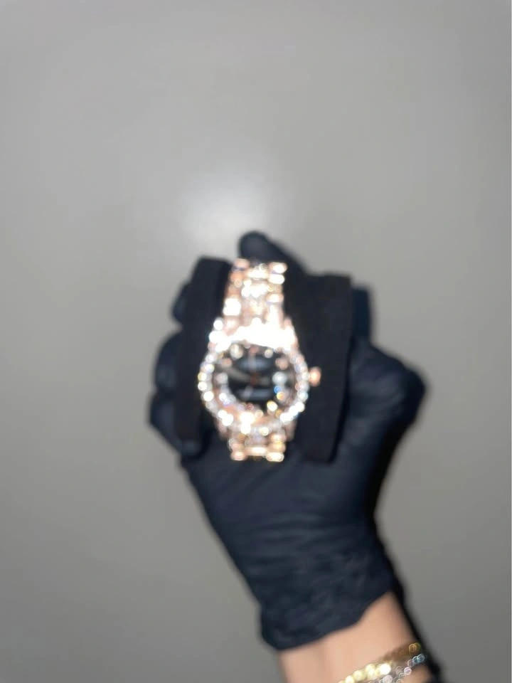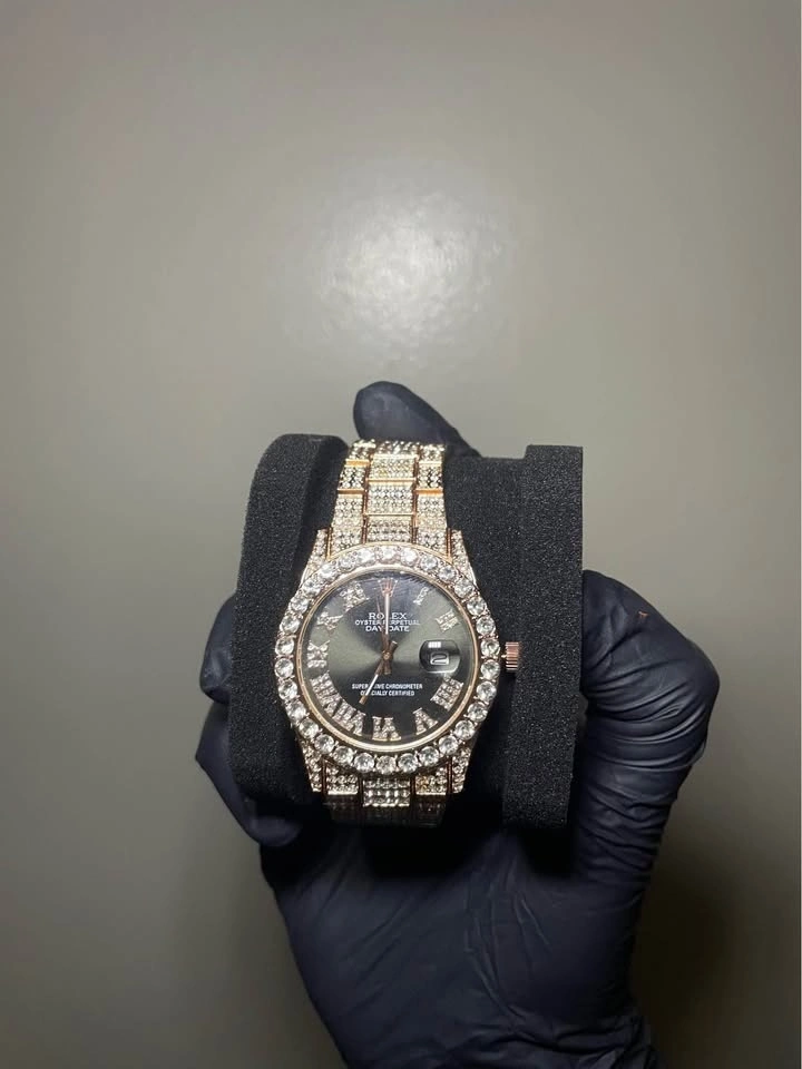 ROLLIE ICED OUT WATCH, STAINLESS STEEL, ROSE GOLD, 5A CZ STONES