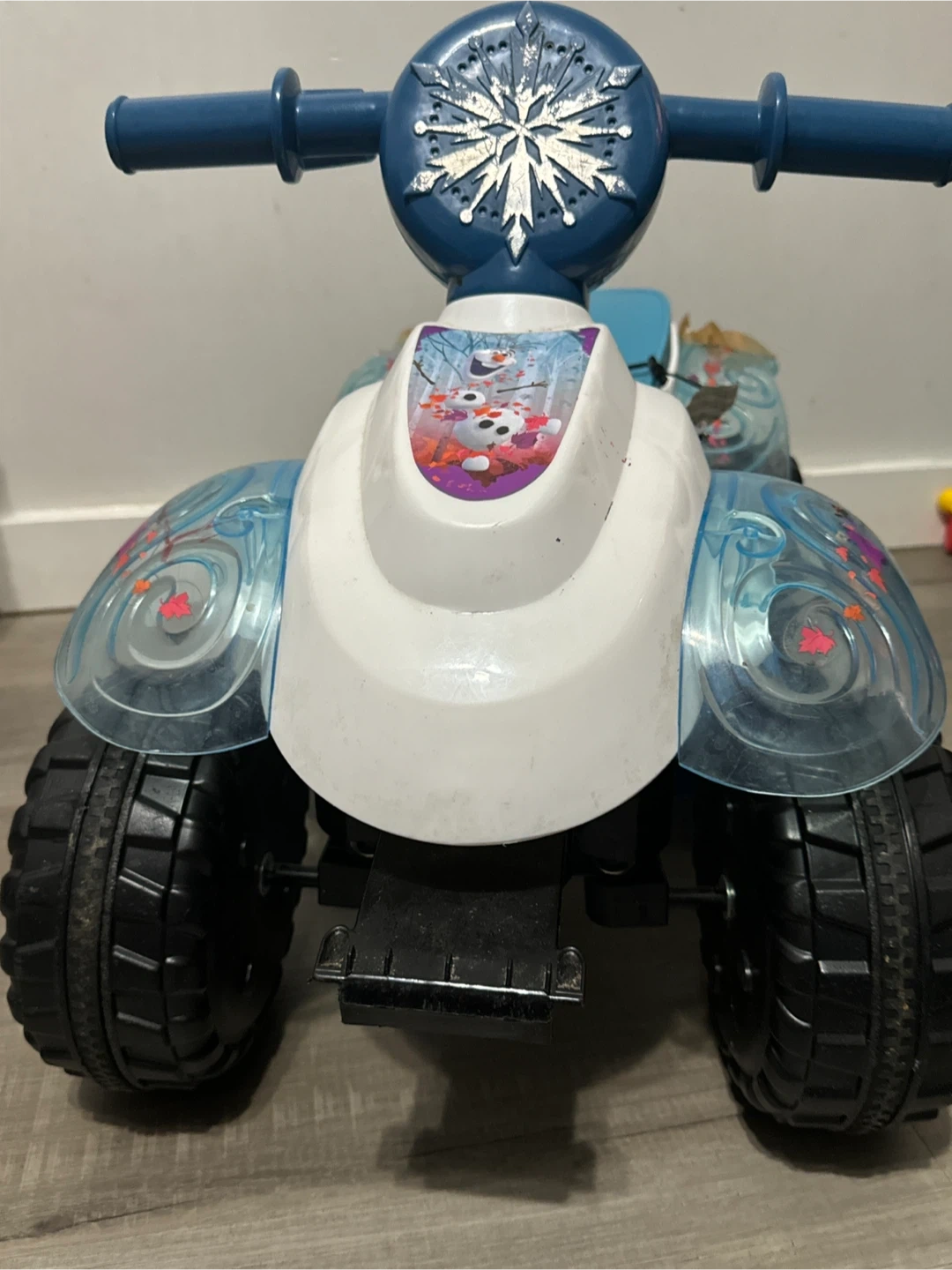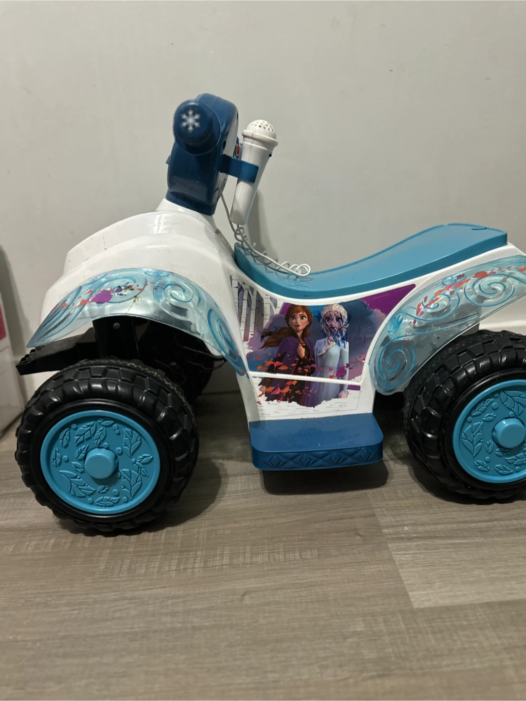 Selling a Disney Frozen-themed ride-on quad for kids. It features graphics from the movie Frozen. Perfect for little fans of Elsa and Anna!