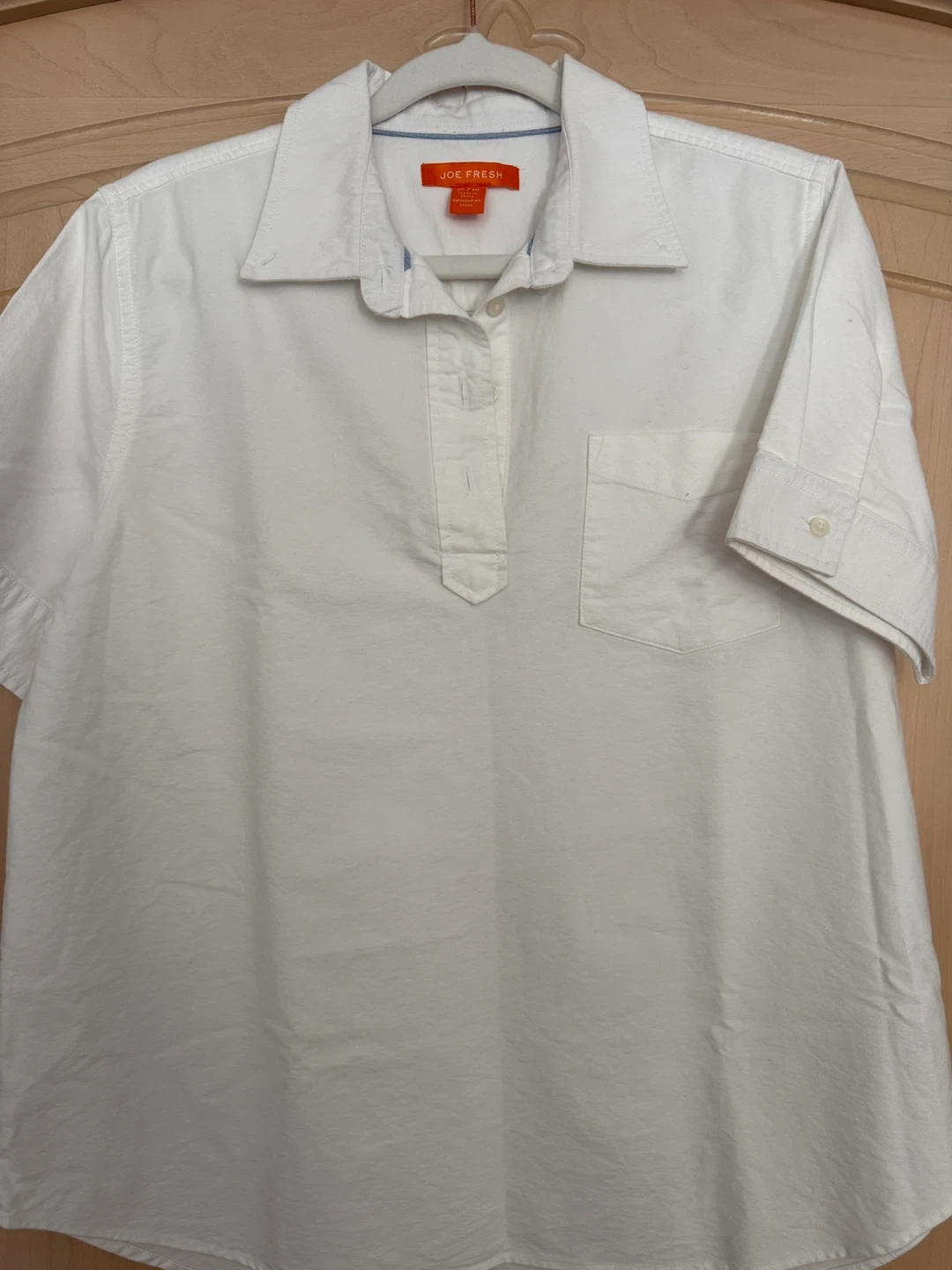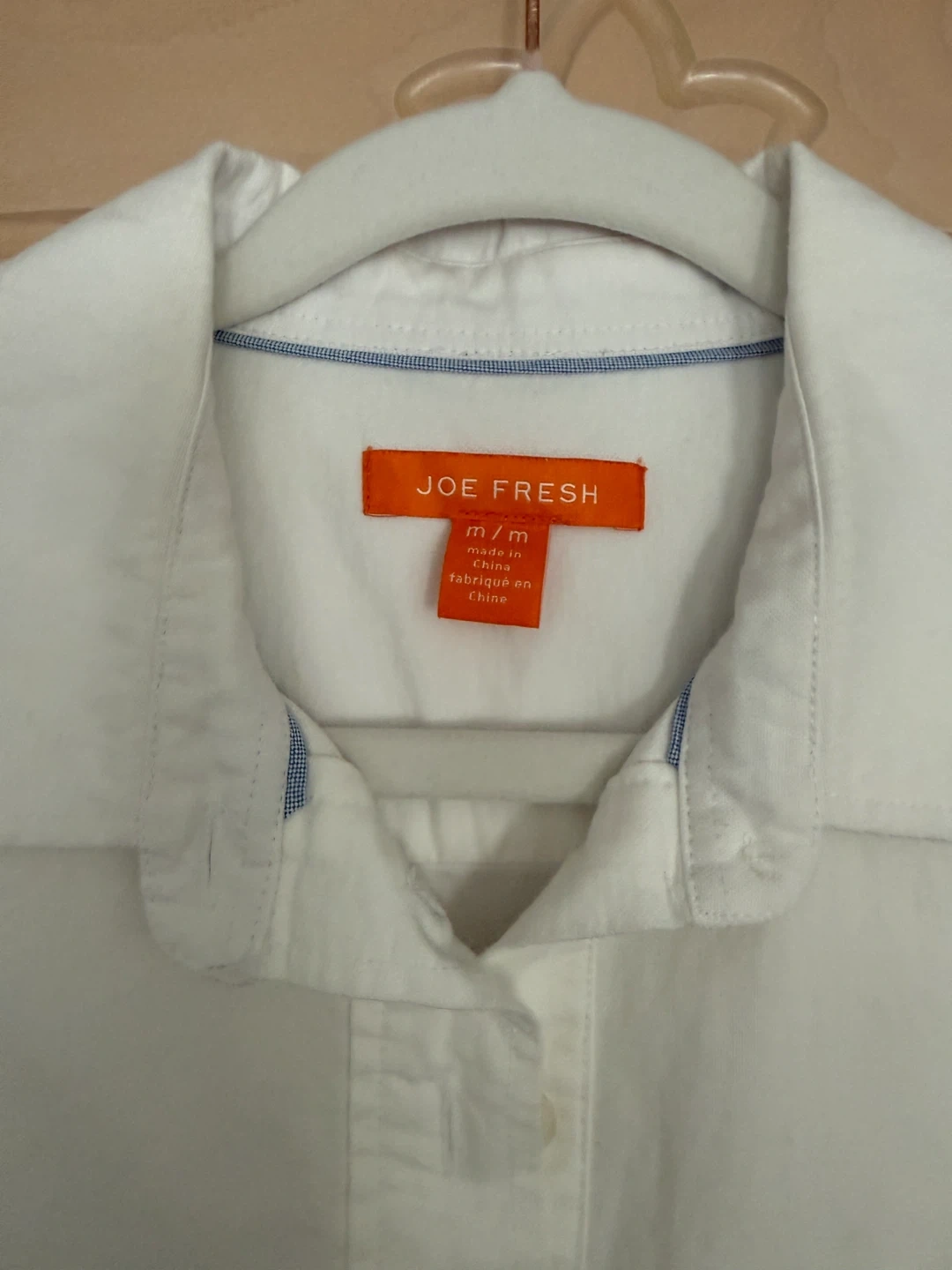 A simple and clean white shirt from Joe Fresh! This shirt is a size medium and in great condition. Perfect for a casual day out or dressing up a bit