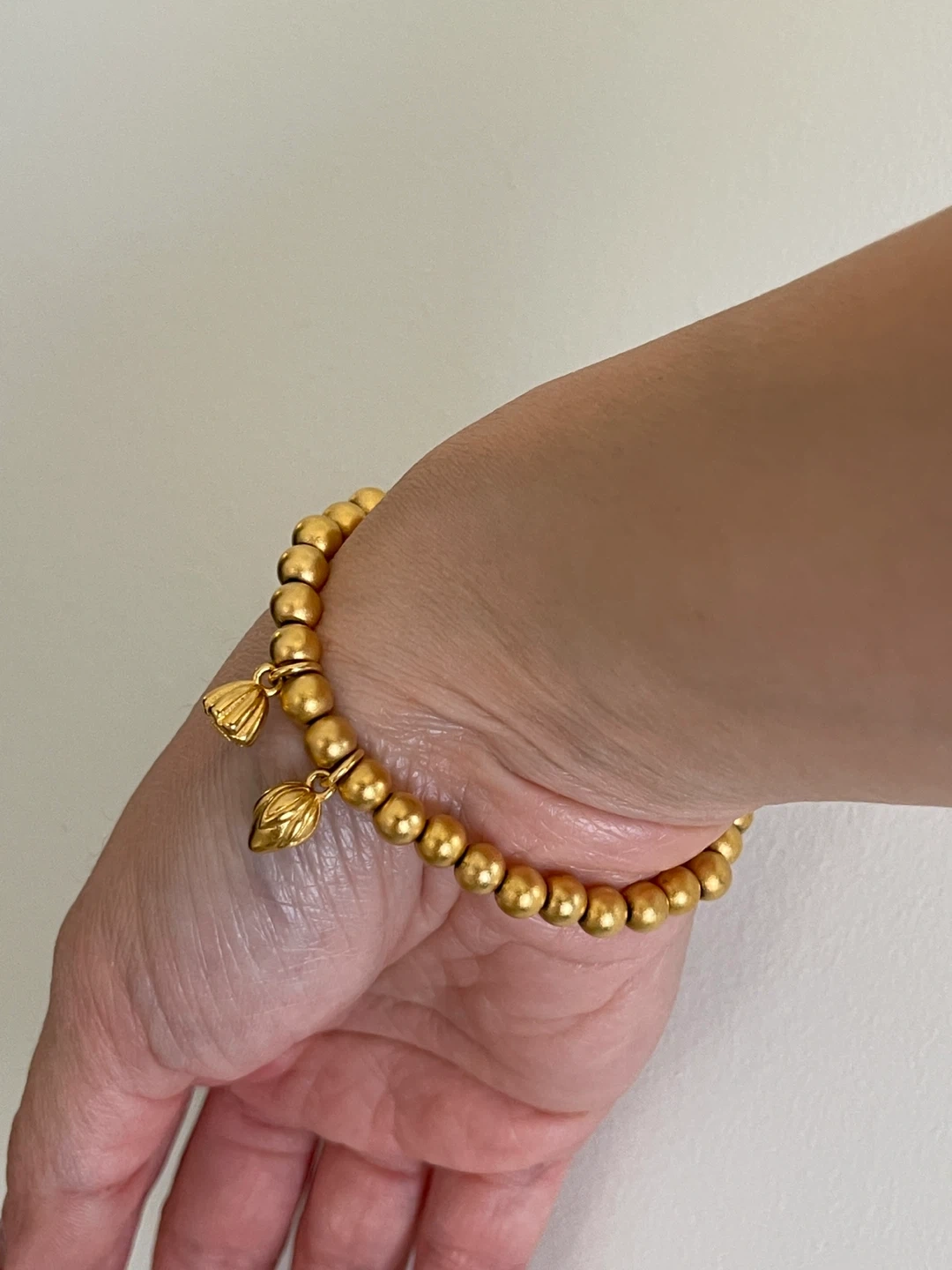 Gold Colour Beaded Bracelet with Lotus Charms