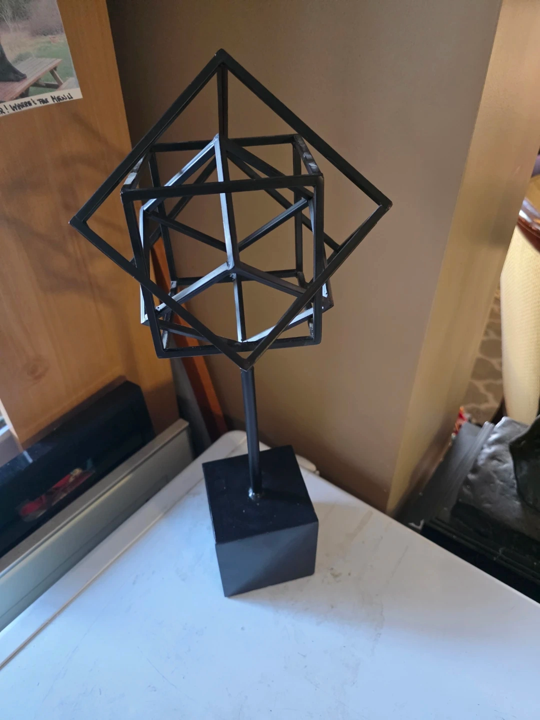 Selling a geometric metal sculpture from Moe's Home Collection. It's a cool piece of decor with an abstract cube design. The height is approximately 20 inches. Originally bought price $66