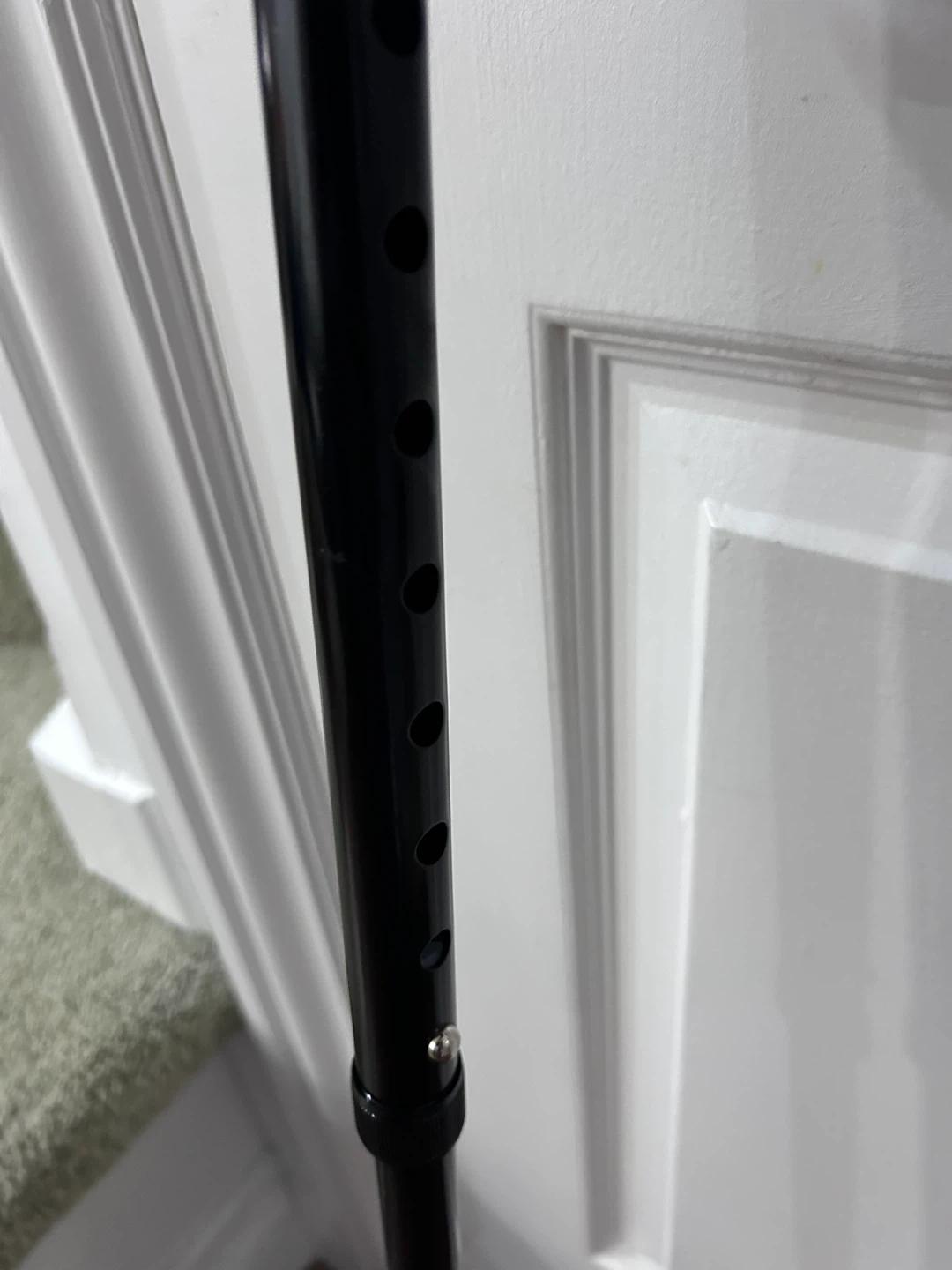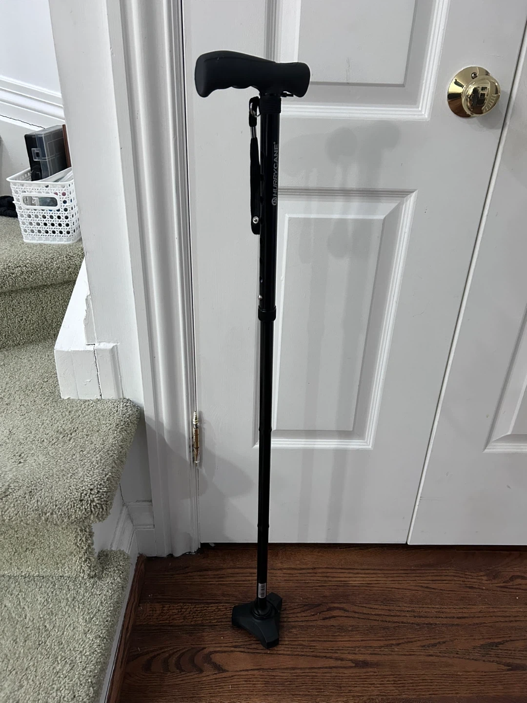 Selling a HurryCane walking cane in black. It's adjustable to different heights, making it a versatile aid for mobility. The cane is in great shape and ready to assist someone who needs a bit of extra support! It can also come apart for easy travel.