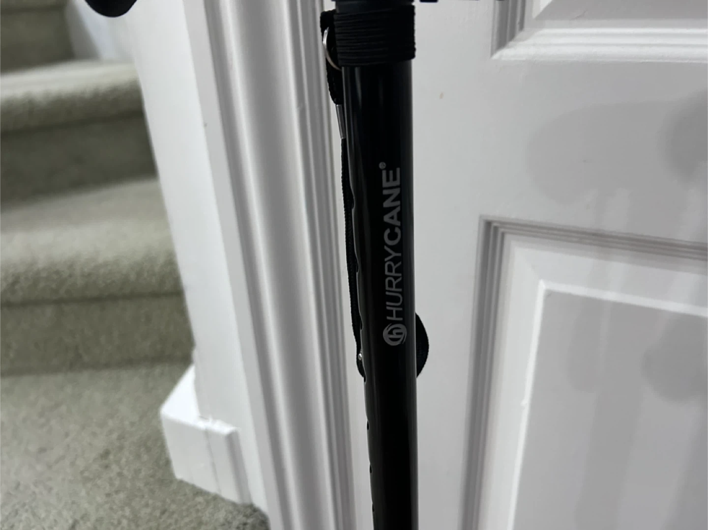 Selling a HurryCane walking cane in black. It's adjustable to different heights, making it a versatile aid for mobility. The cane is in great shape and ready to assist someone who needs a bit of extra support! It can also come apart for easy travel.