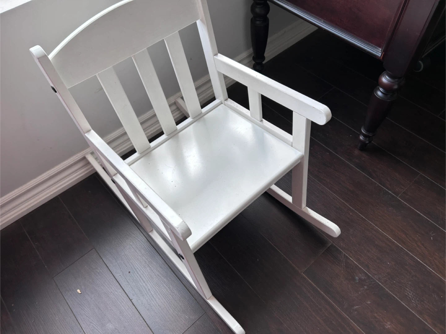 Buy & SellWhite Kids Rocking ChairWhite Kids Rocking Chair$11Selling a cute, white kids rocking chair. It's in great condition and perfect for a child's room or play areaConditionGoodWHERE TO MEETCheck LocationView MapSELLERverifiedWhitneyYonge and Lawrence1045 reviews2 chats·0 favorites·44 viewsSEND CHAT TO SELLERHi Whitney! I’m interested in your listing.Hi Whitney! I’m interested in your listing.Get the Karrot app to chatSign In to chat