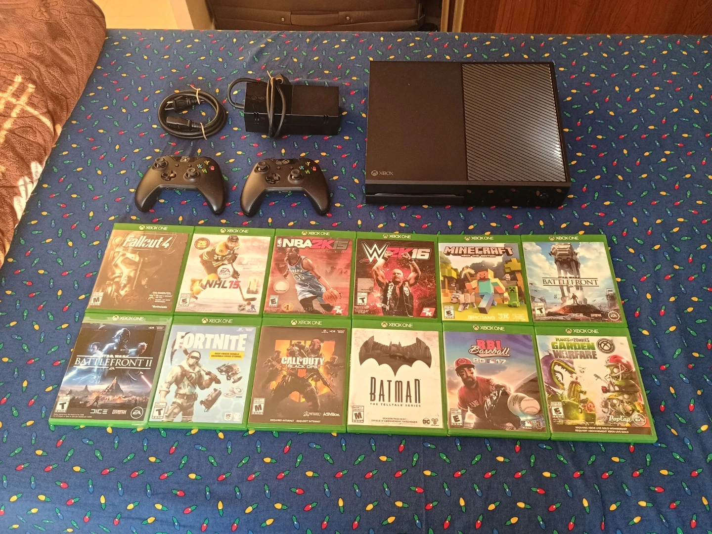 Step into gaming instantly! Selling a fully working Xbox One console with 2 controllers and 12 physical games, perfect for casual or serious gamers.