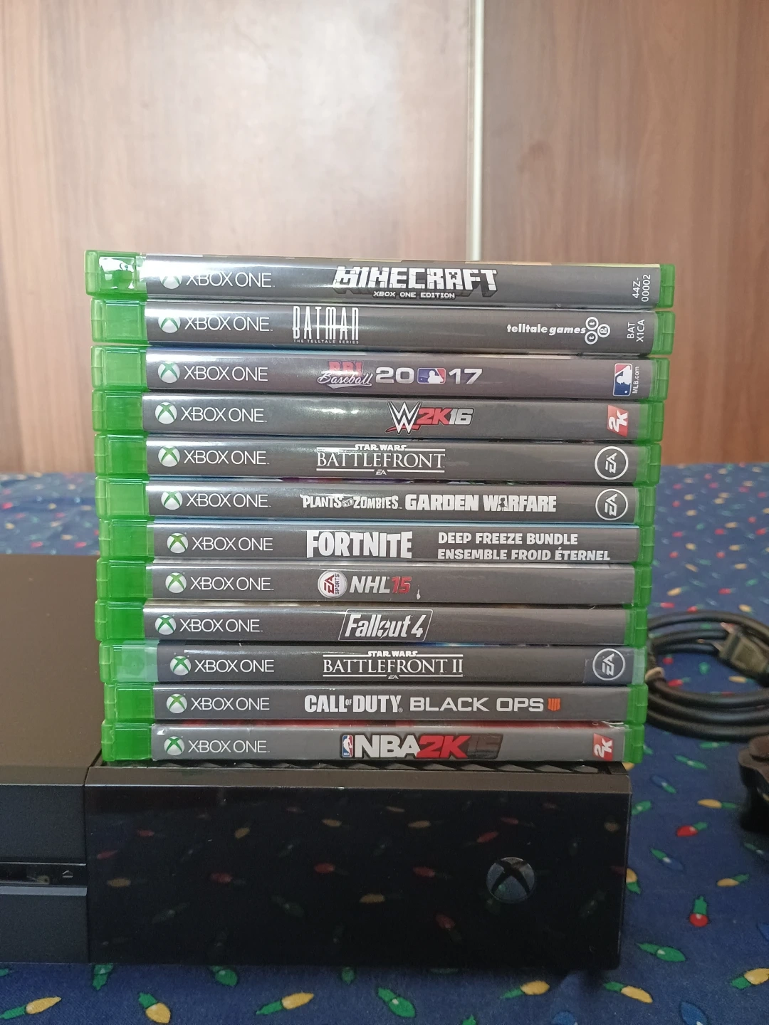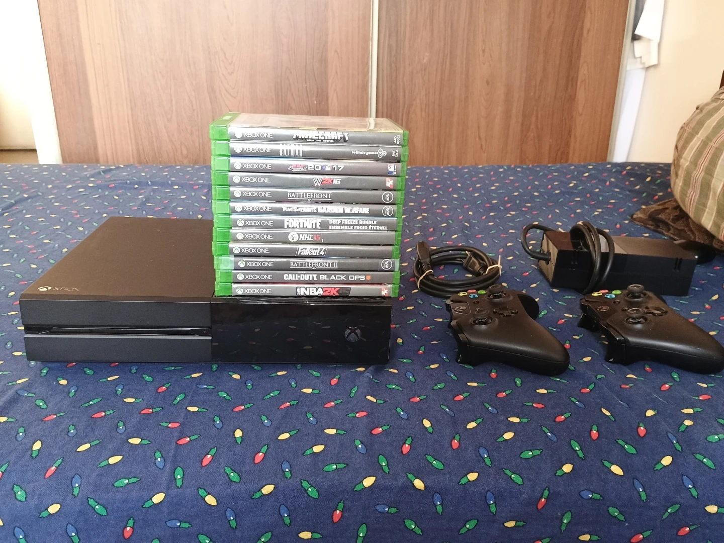 Step into gaming instantly! Selling a fully working Xbox One console with 2 controllers and 12 physical games, perfect for casual or serious gamers.