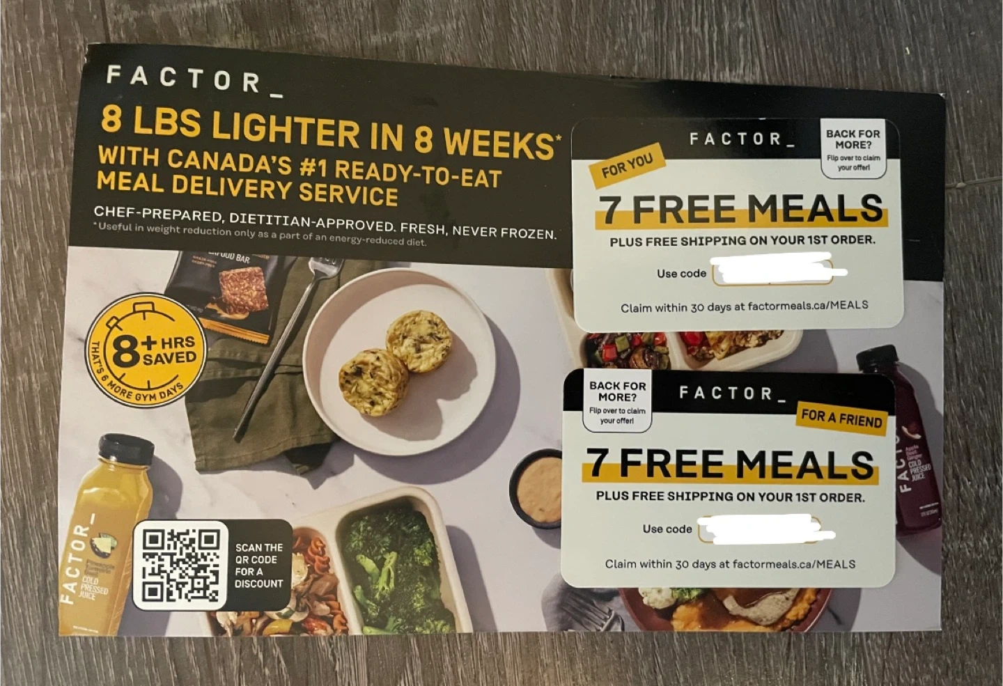 I have a coupon for 7 free meals from Factor, plus free shipping on your first order. Claim within 30 days at factormeals.ca/MEALS