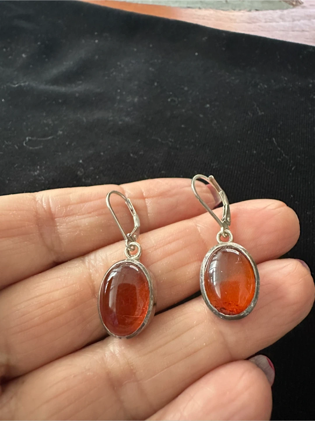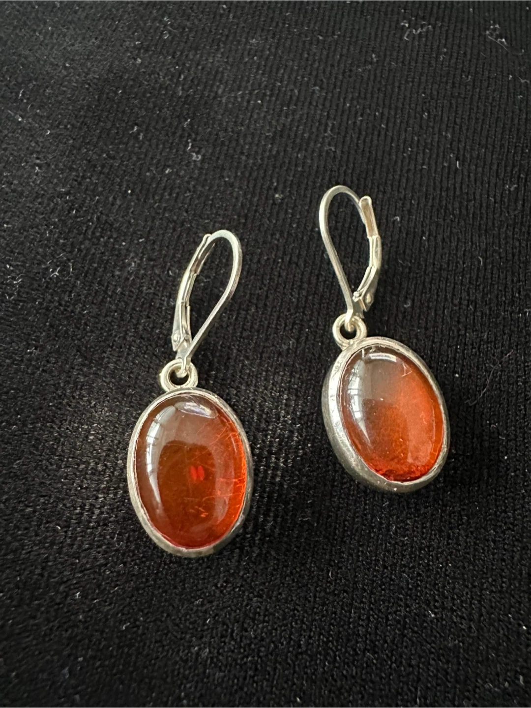 Here are some lovely amber drop earrings with sterling silver hardware! They have a beautiful warm tone and are perfect for adding a touch of elegance to any outfit