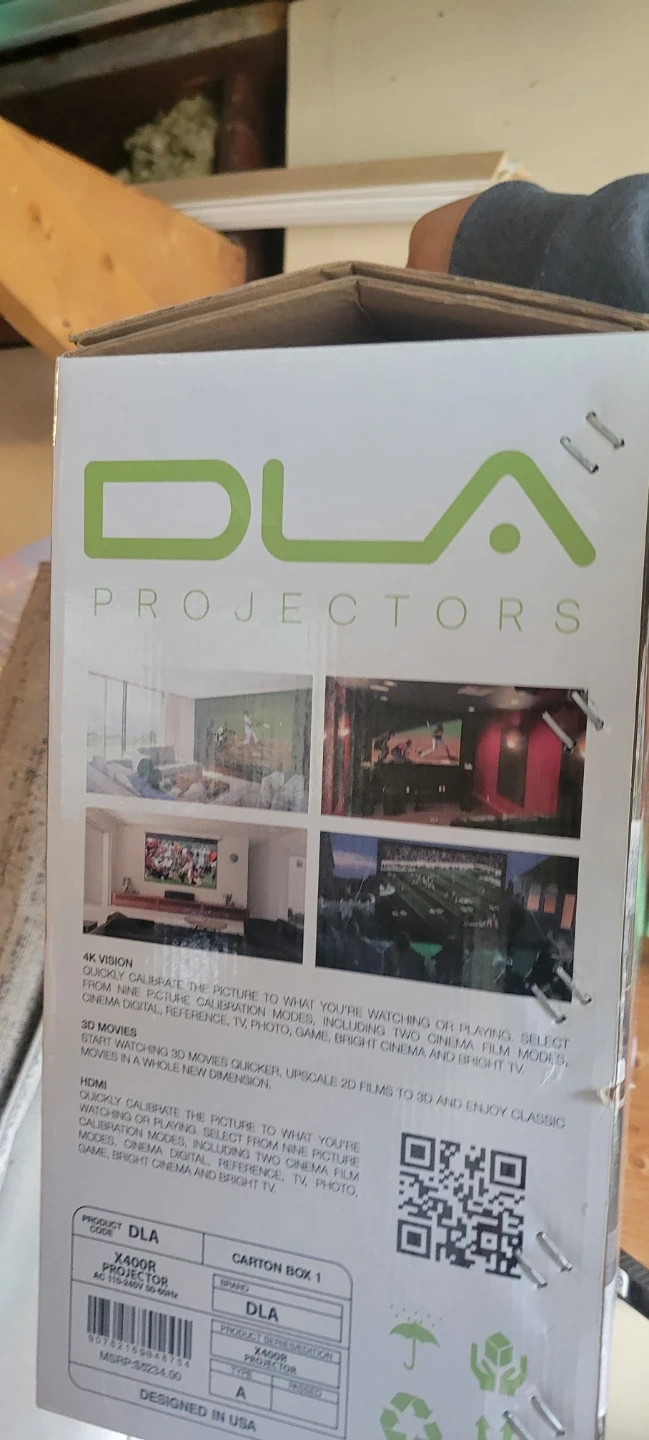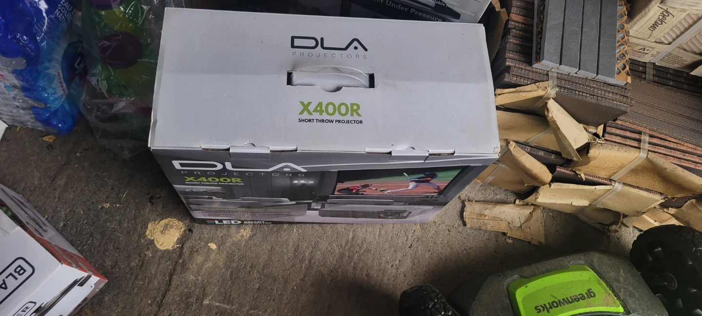 Selling a DLA Projectors X400R short throw projector. It features a 3D optimized light engine and advanced picture with digital video. It also has noise reduction with a 25dB ultra quiet fan and a 5" LCD TFT display. The contrast ratio is 80000:1.