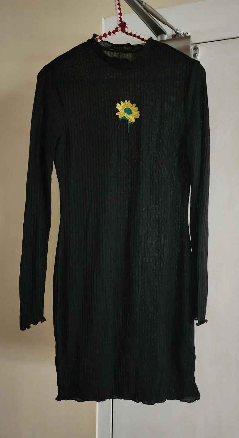 Beautiful Rib Knit Mini Dress * Sunflower Embroidery * NEW