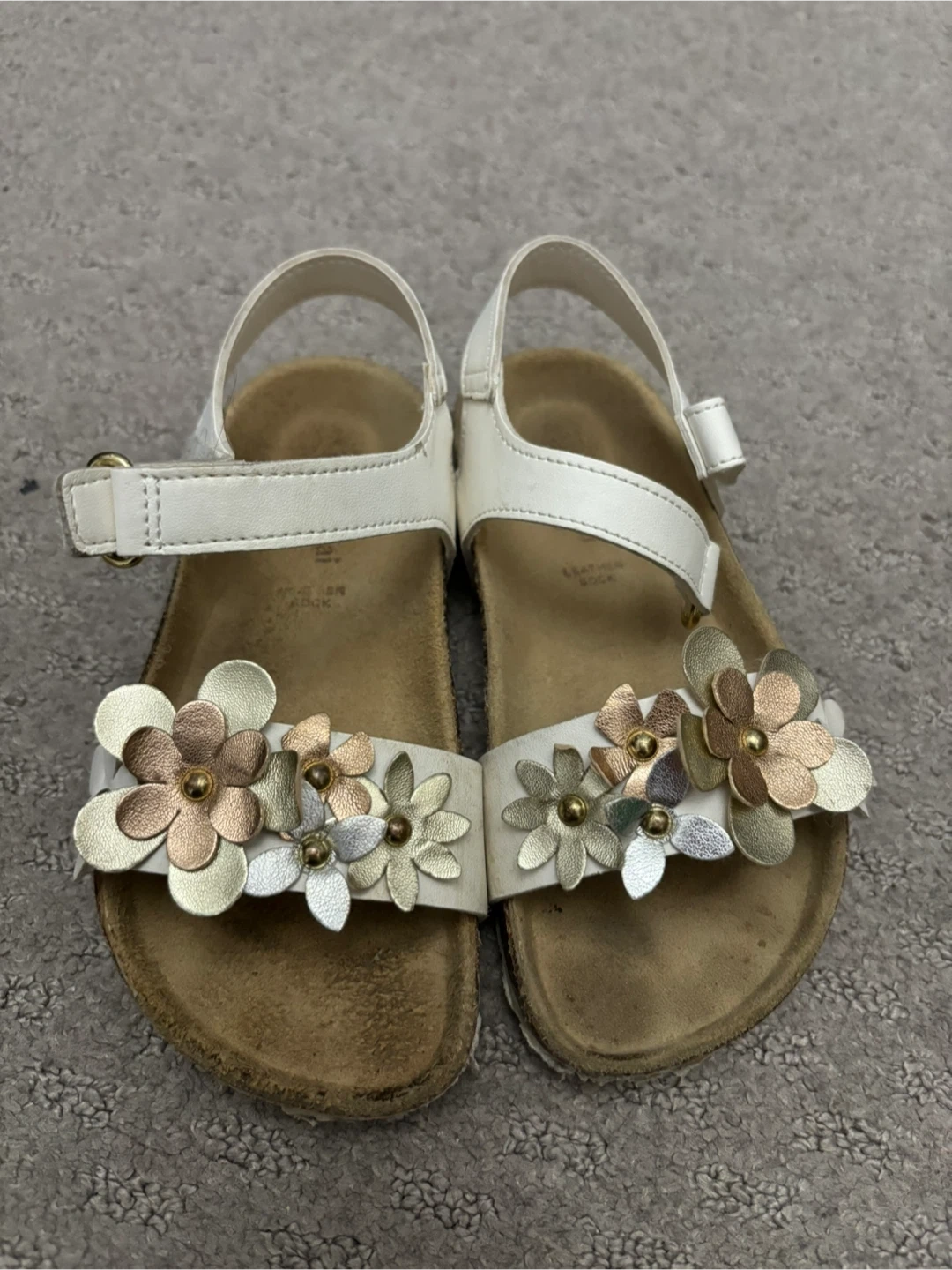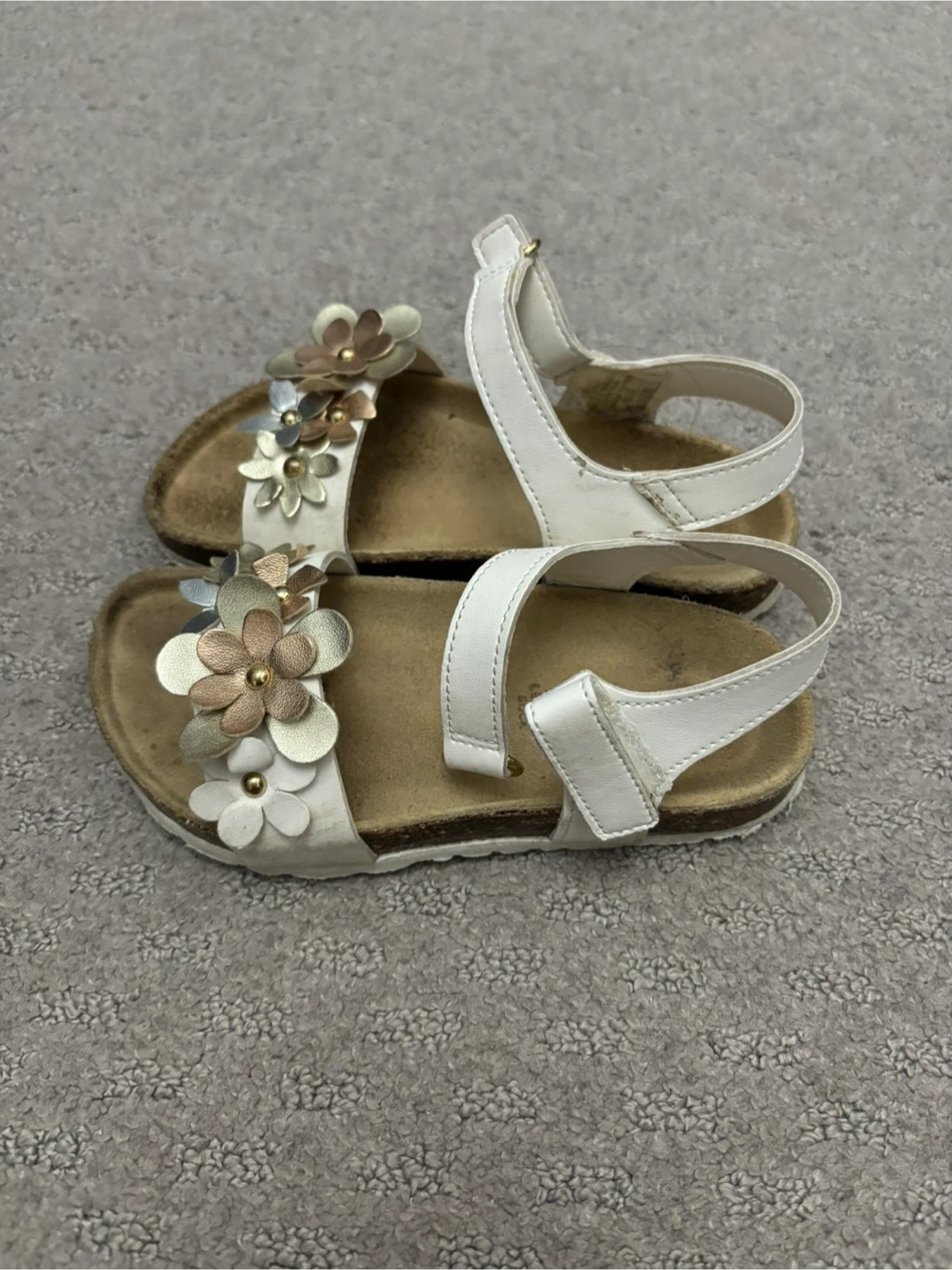 Cute pair of Palai sandals in a size 11! They feature a white leather upper and flower details. Perfect for your little one's summer adventures!