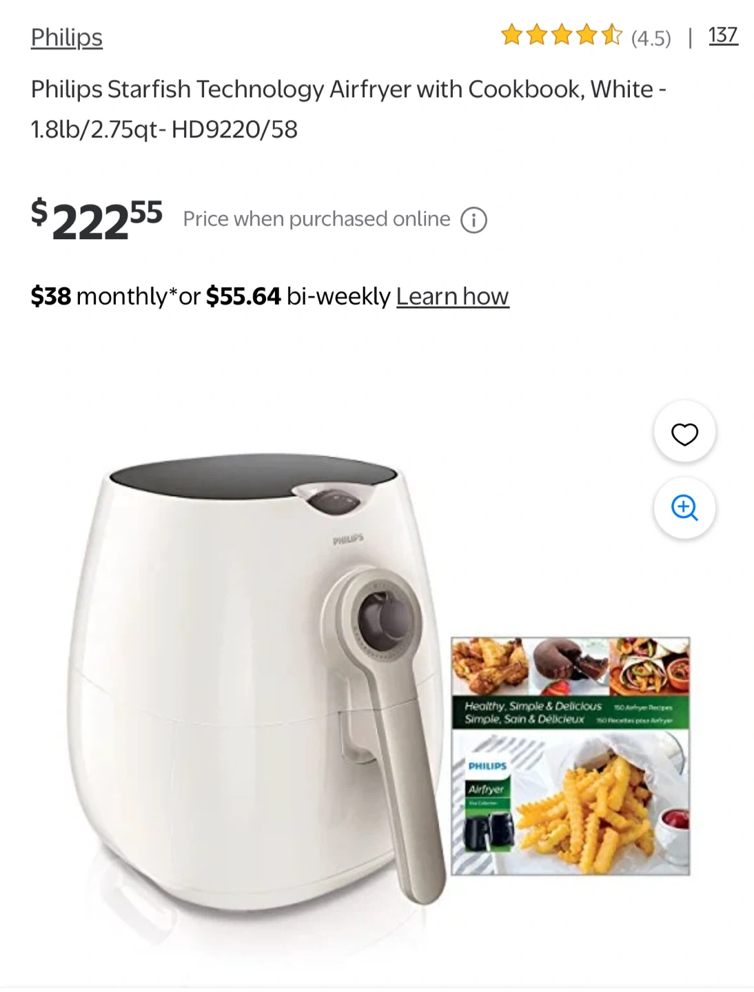 Selling a Philips Starfish Technology Airfryer with Cookbook.
