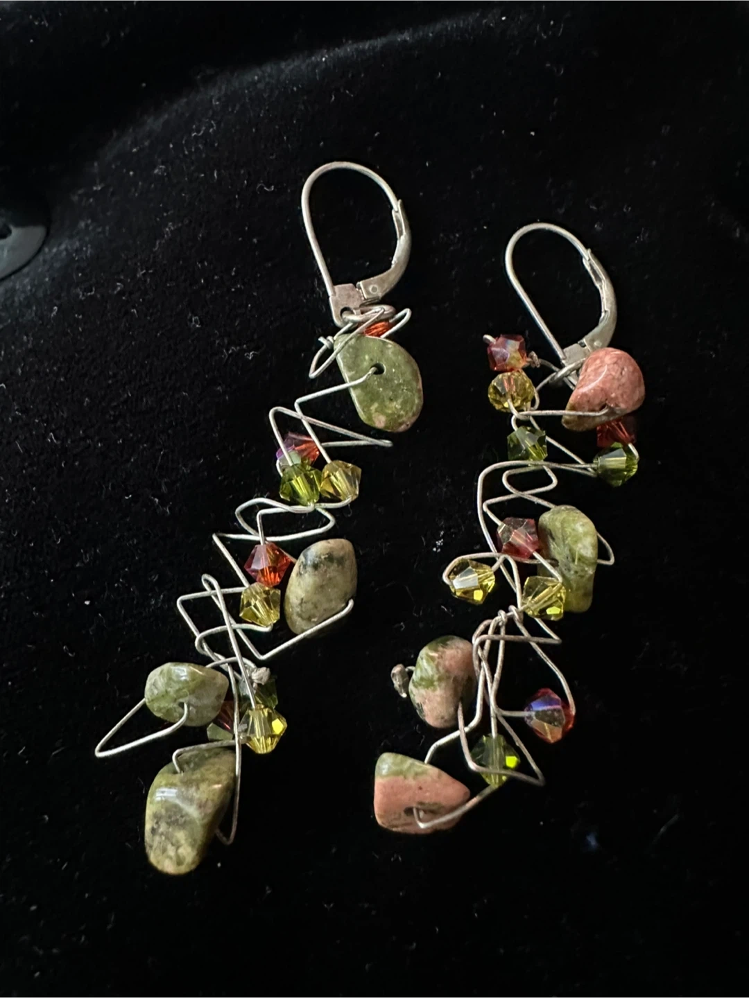 Selling a handmade jewelry set! It includes a bracelet and a pair of earrings. The pieces are made with natural stones, crystals, and silver wire. Perfect to add a unique touch to your outfit!