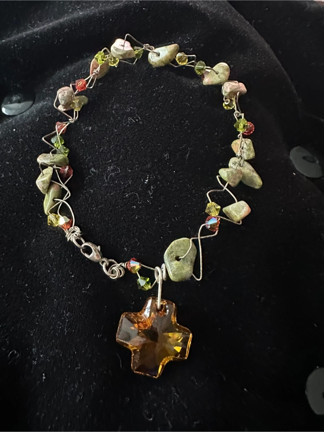 Selling a handmade jewelry set! It includes a bracelet and a pair of earrings. The pieces are made with natural stones, crystals, and silver wire. Perfect to add a unique touch to your outfit!