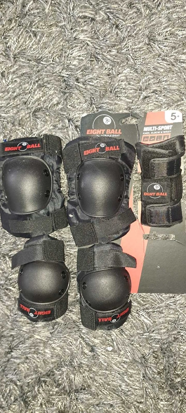 Brand: Eight Ball. Ages: 5+. Smoke free household. Comes with elbow, knee, and wrist pads. Only used once so it's still in excellent condition.