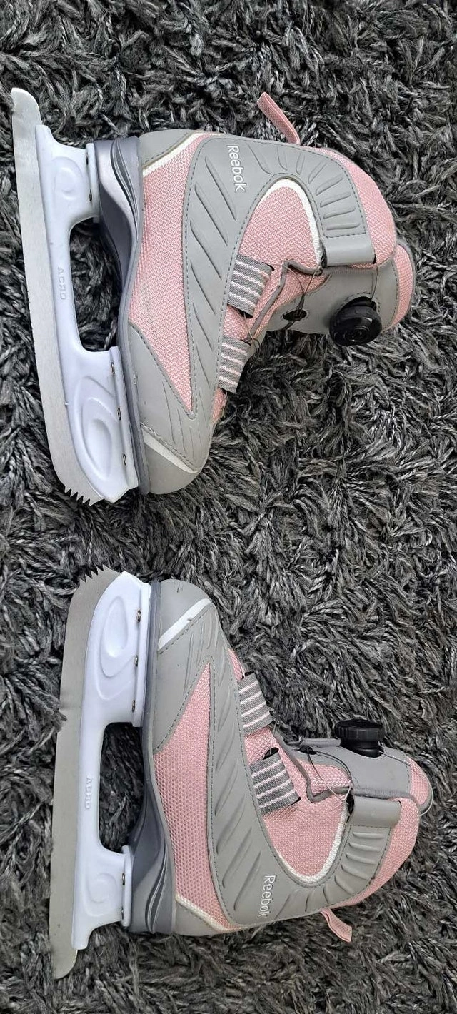 Reebok girls ice skates, size 2. Excellent condition. Smoke-free household. Light rust on blades because they haven't been used for a number of years, so will need sharpening.