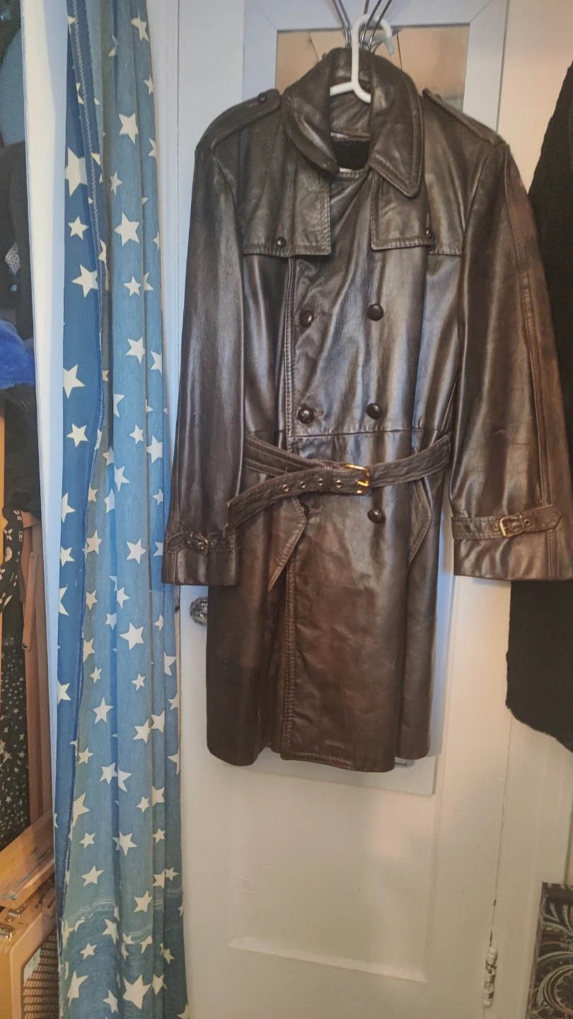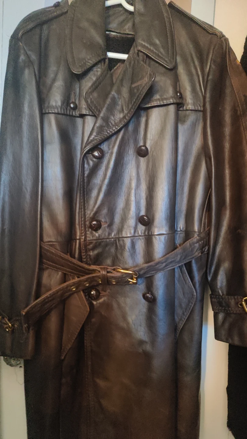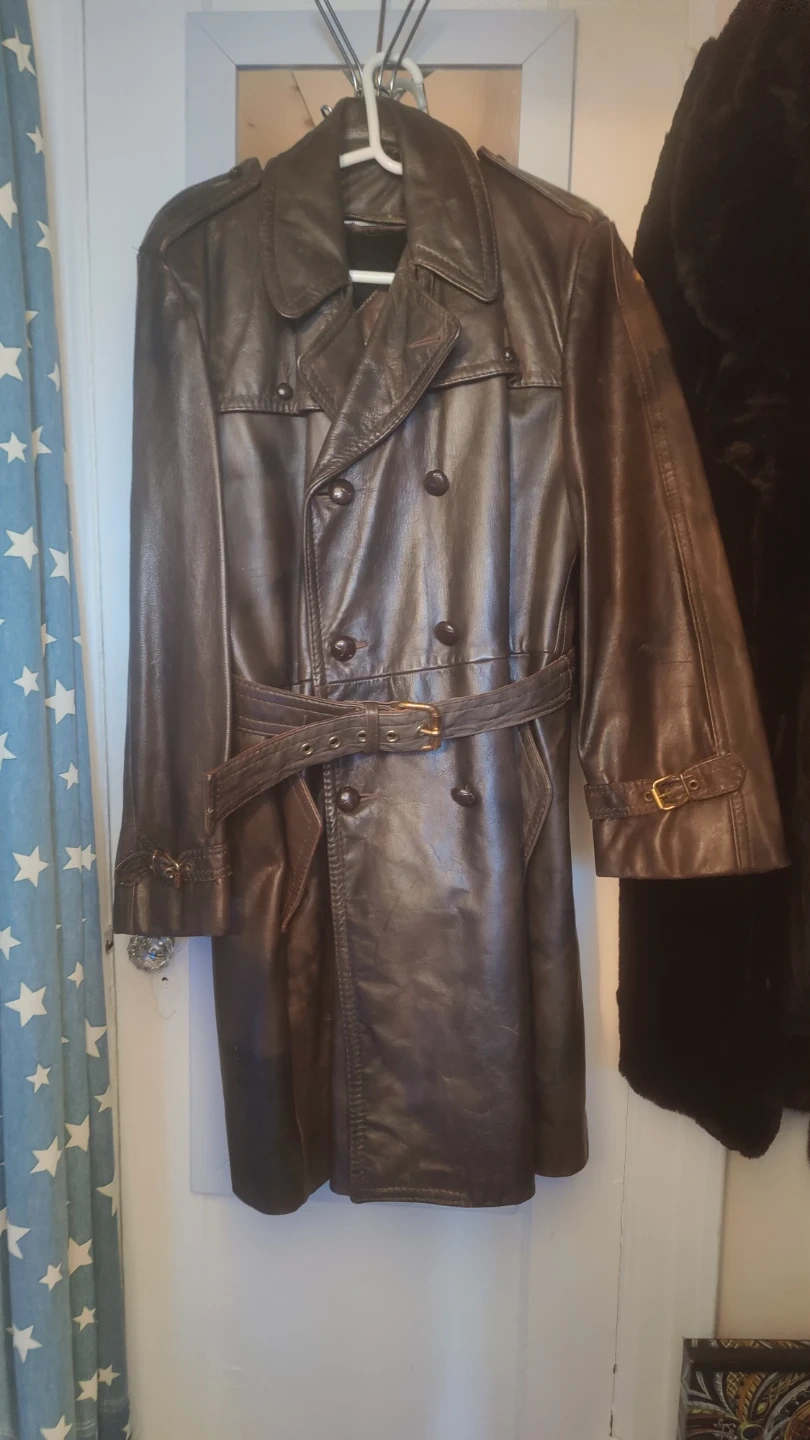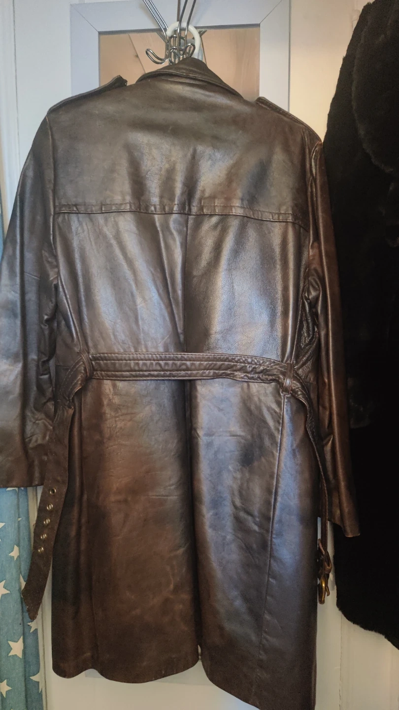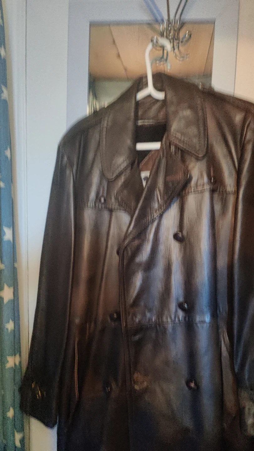 LEATHER, brown, thick Man's Coat in GREAT SHAPE. Size is a large-med. Zip out lining, belt and buttons all in Great shape Issued by military in Alaska early 60s. Very warm. Make offer and will trade for something. I just want this vintage coat be worn by. someone who could use it and enjoy how WARM IT KEEPS THE WEARER. Great to wear when riding a motorcycle/scooter. If interested contact .