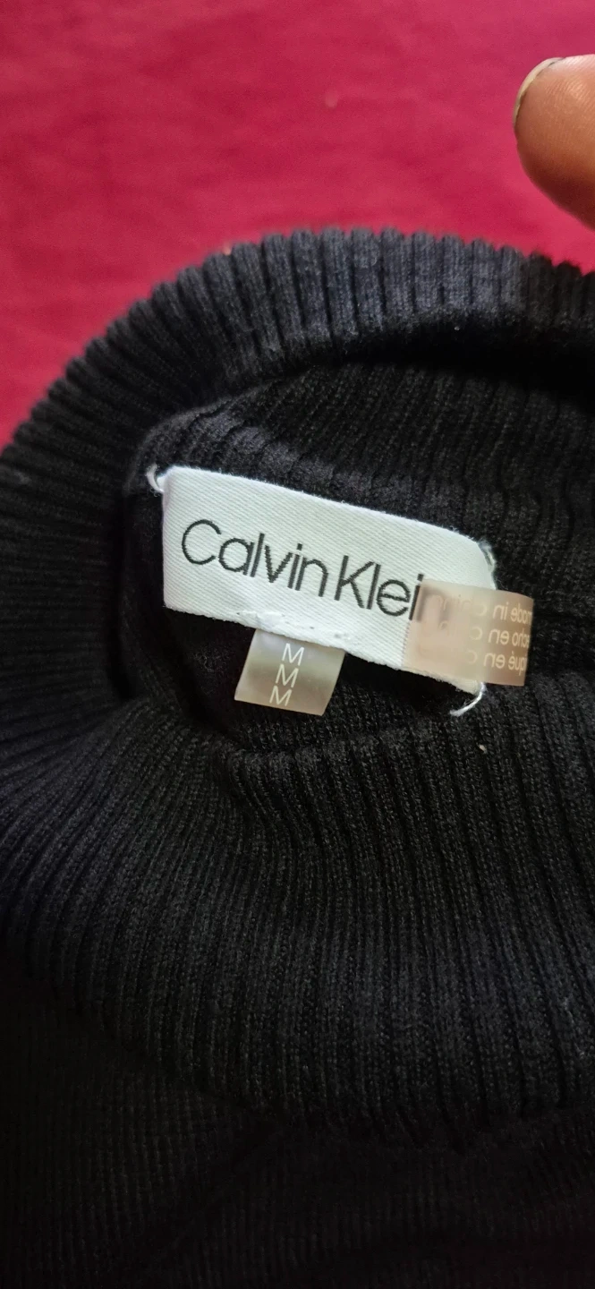 Selling a Calvin Klein dress in size M. It features a stylish colour block design with black on top and grey on the bottom. The dress is in great condition and ready for a new home!