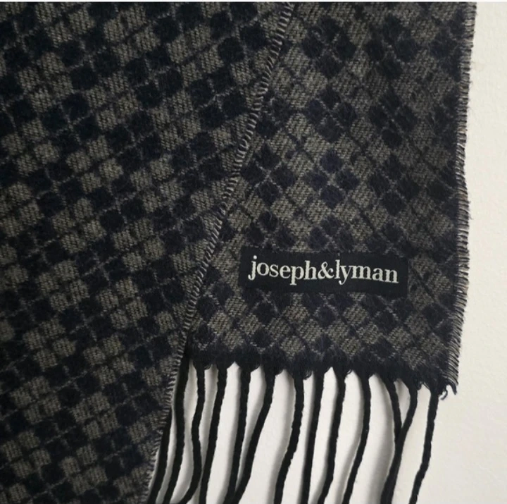 Cozy up with this stylish Joseph & Lyman scarf! It features a classic black and grey pattern, perfect for adding a touch of sophistication to any outfit. The scarf is in great condition and ready to keep you warm this season