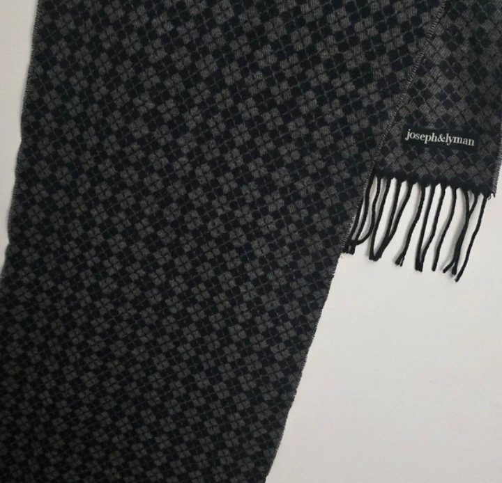Cozy up with this stylish Joseph & Lyman scarf! It features a classic black and grey pattern, perfect for adding a touch of sophistication to any outfit. The scarf is in great condition and ready to keep you warm this season