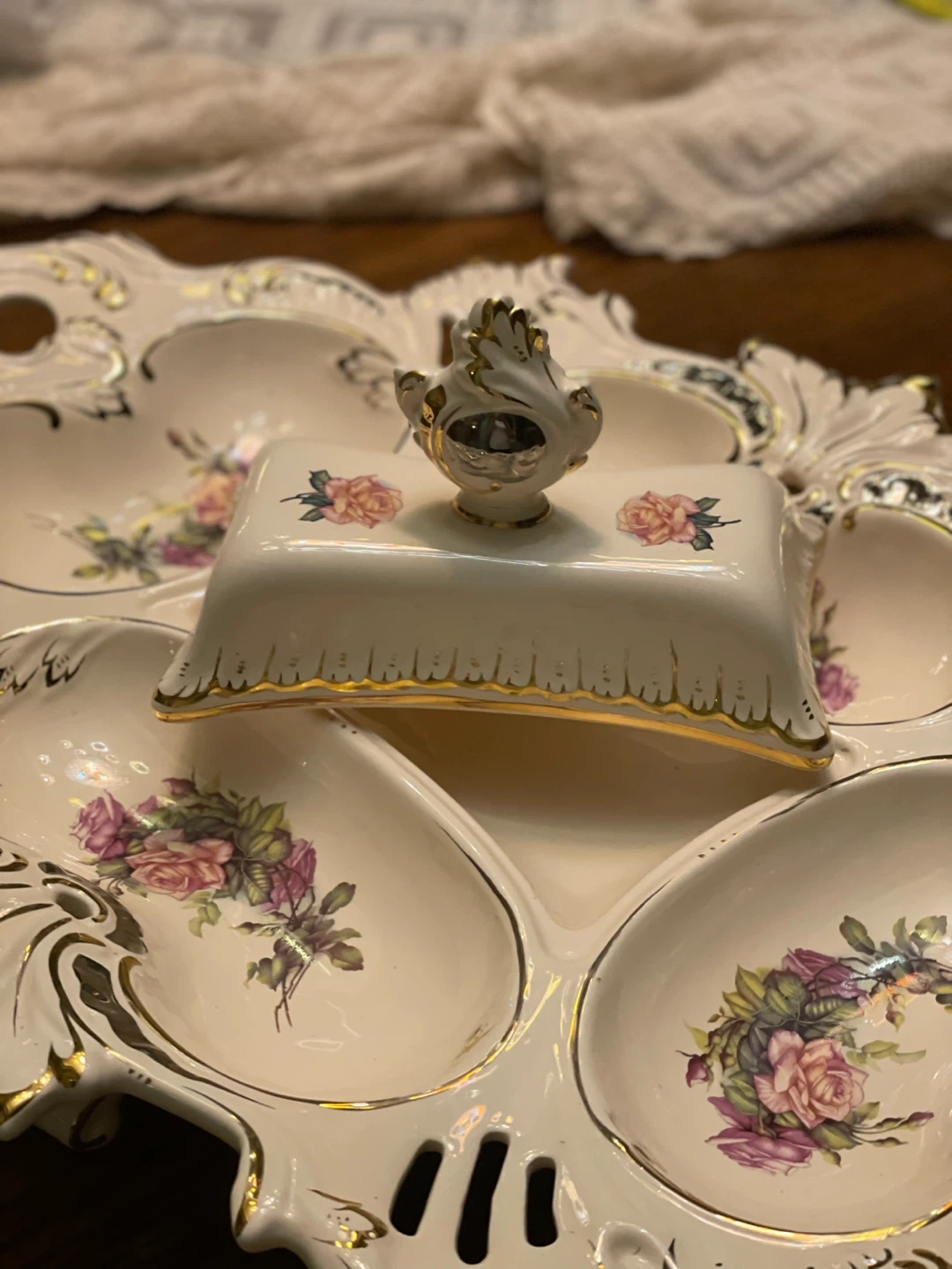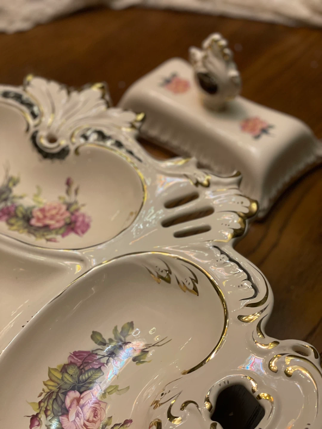 Selling a beautiful Babylon Dynasty divided serving dish! It features a lovely floral design with gold accents. Perfect for serving appetizers or desserts at your next gathering