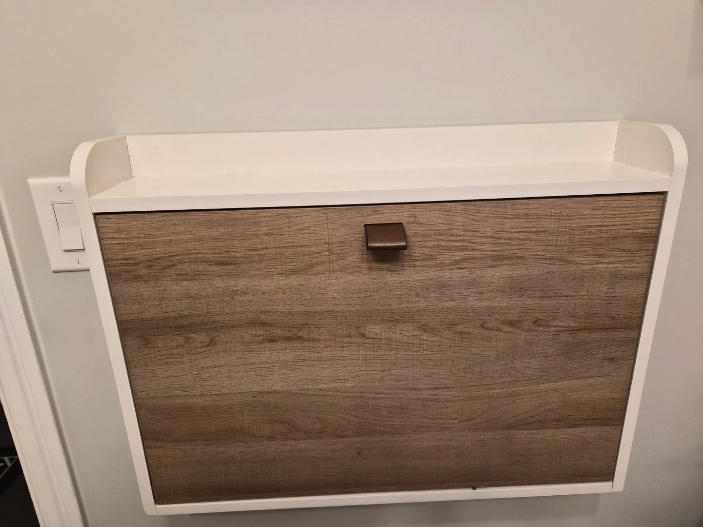 This wall-mounted folding desk is a great space-saving solution for small homes or apartments. It's perfect for a home office, study area, or craft space. The desk folds up neatly when not in use, and the neutral colour will match any decor!