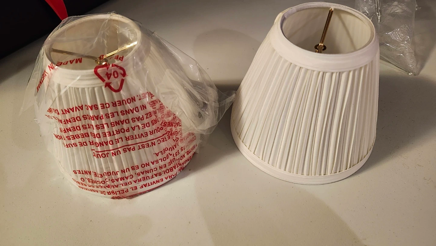 Selling a set of two pleated lamp shades in white! One is still in the original packaging. They're in great condition and ready to brighten up your space.